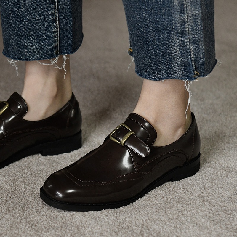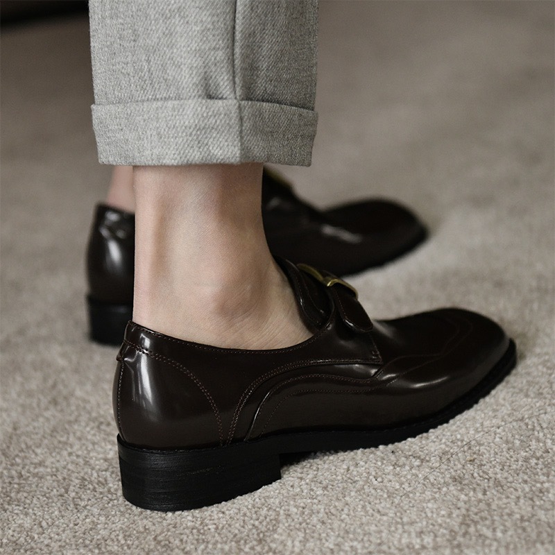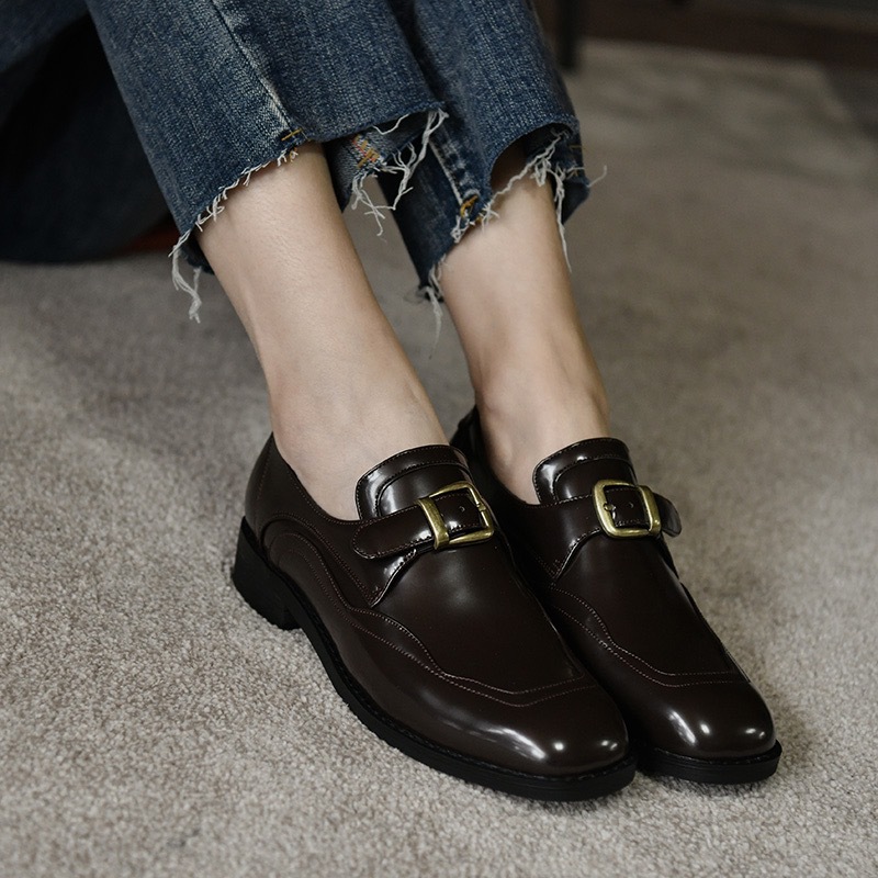 Retro Square Toe Belt Buckle All-match Square Heel Loafers-4