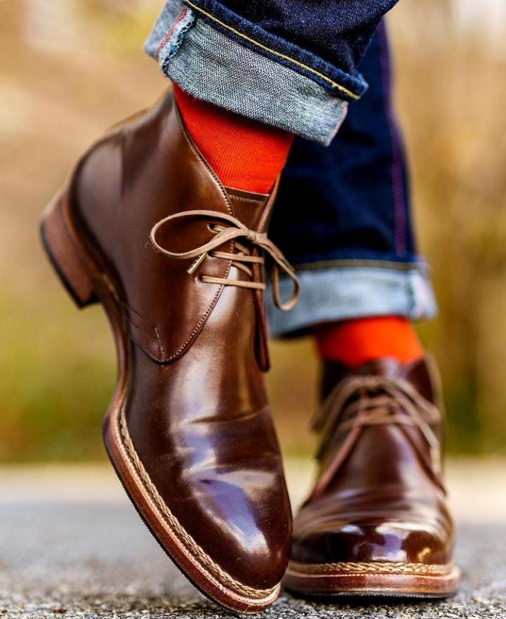 Luxury Men's Hand Stitch Chocolate Brown Chukka Style Leather Lace Up Boot