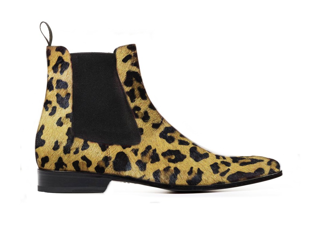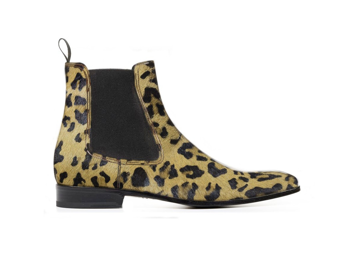 Hand Crafted Men's Leopard Skin Print Leather Ankle High Chelsea Boot