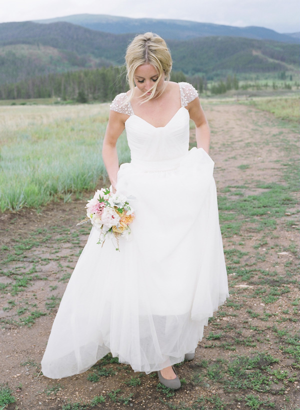 White Tulle Wedding Dresses with Beaded Cap Sleeve-3