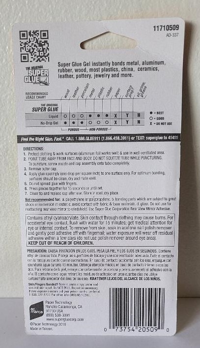 The Original Super Glue... now in a gel! Bonds instantly and is great for use on metal, plastic, rubber, jewelry, ceramics, fingernails, and more! Self-piercing tubes have a precision applicator that helps deliver glue to even the smallest surfaces with no runs and no drips. Does not run or drip Bonds Instantly, no more waiting to dry Precision applicator for a clean application Comes in an easy to use squeeze tubes Package Contents: One 3-Tube Pack of Super Glue