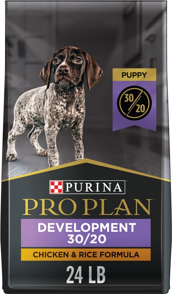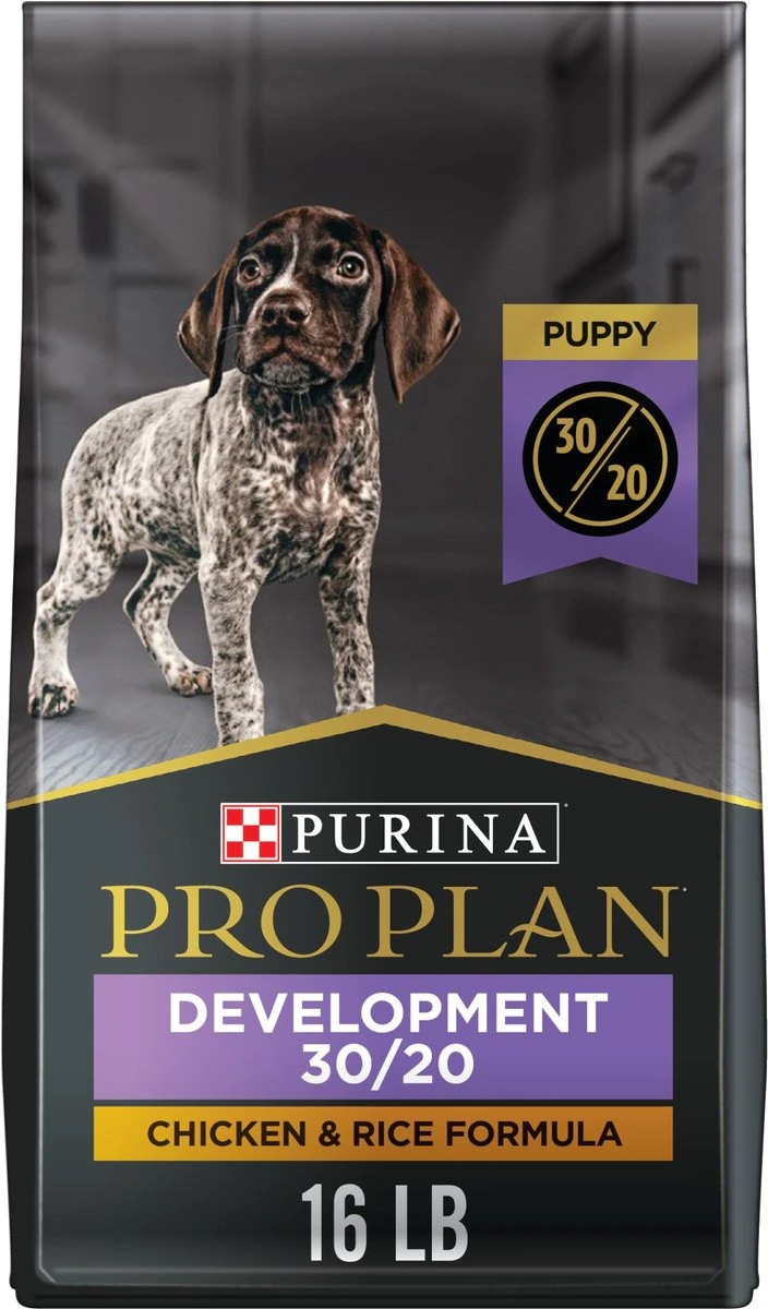 Support your growing puppy with fine-tuned dry puppy food for healthy development, strength and endurance with Purina Pro Plan Sport Development 30/20 Chicken & Rice High Protein Puppy Food. This delicious Purina Pro Plan puppy food is a chicken dog food developed for athletic puppies like yours. This dog food with glucosamine supports joints and cartilage while nutrients like calcium, phosphorus, and essential vitamins. promote healthy bone growth. Plus, it promotes concentration, problem-solving and trainability to help puppies excel in the field, the show ring, and at home during daily exercise. Chicken is the #1 ingredient in this active dog food with high-quality protein to build lean muscles and antioxidants for dogs for immune health. Unlock your puppy’s athletic potential with Purina Pro Plan Sport for puppies. The dog food kibble in every bag of Purina Pro Plan Sport dog food is rigorously tested for quality and safety and manufactured in Purina-owned U.S. facilities.