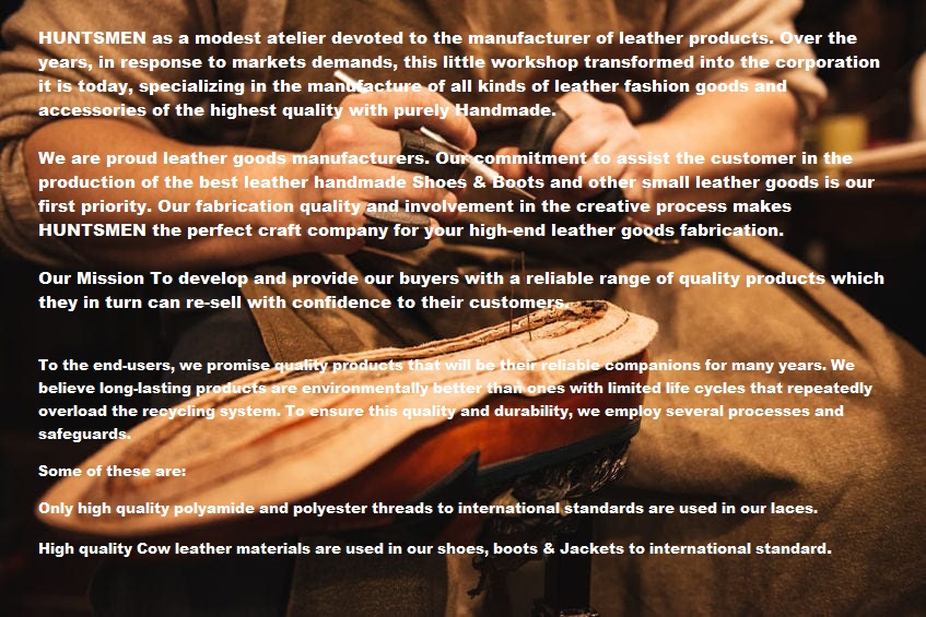 ๊งเผโ Huntsmen Handmade Boots is a Outstanding Quality dedicated to satisfying sophisticated tastes of boot-lovers everywhere, We are Craftsmen, Designers and Dreamers, Who are working together to Redefine how Hand Crafted Leather products are Made and delivered๊งเผโ