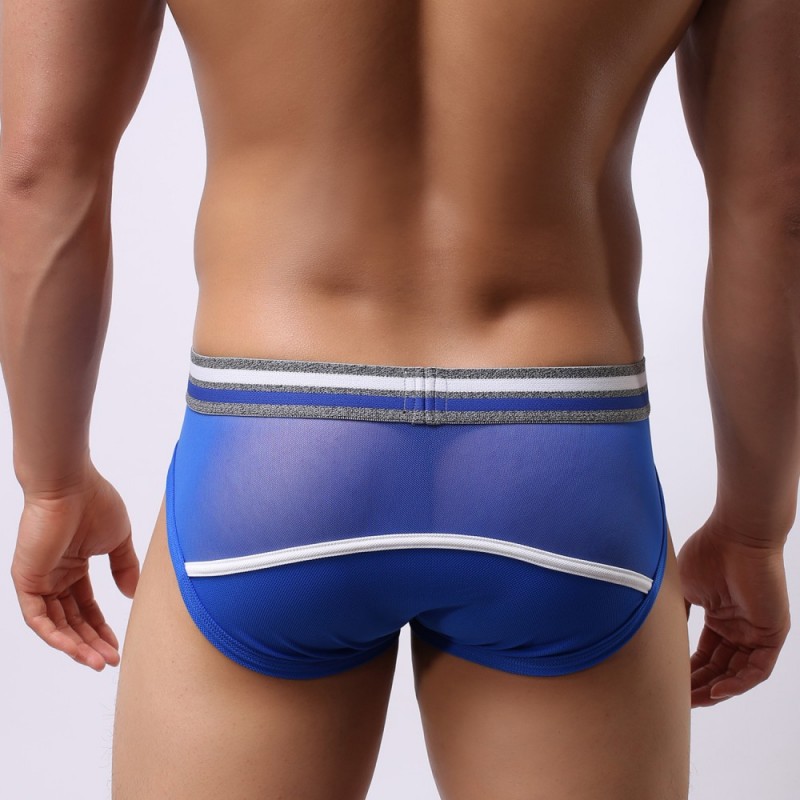 3PK Men's sexy underwear modal mesh low rise briefs underpants Blue #06SJ-1