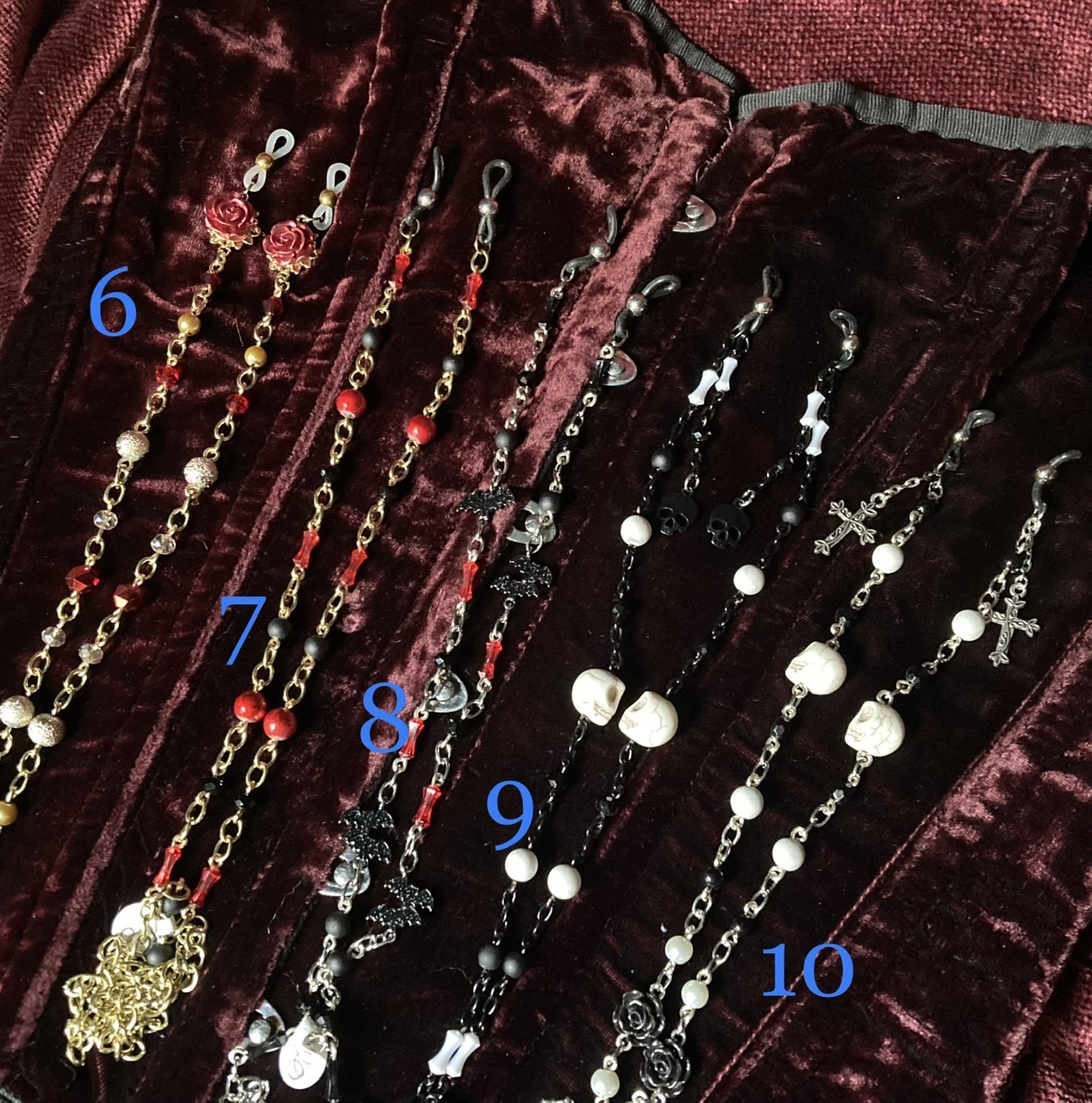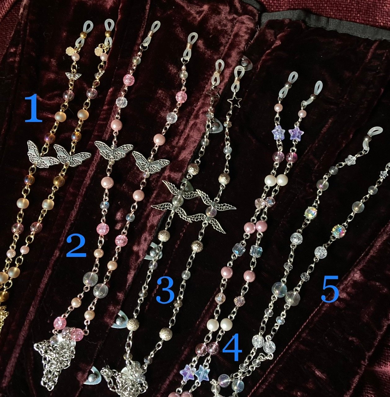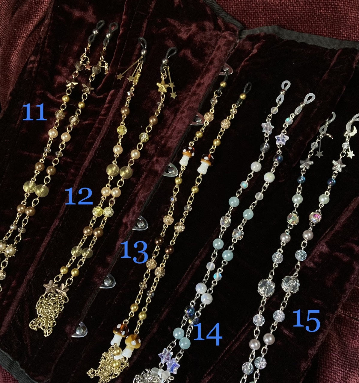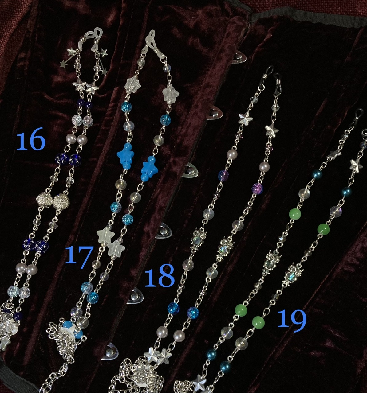 All eyeglass chains are 29-30 inches in length. I can add more length on request; just leave a note at checkout.