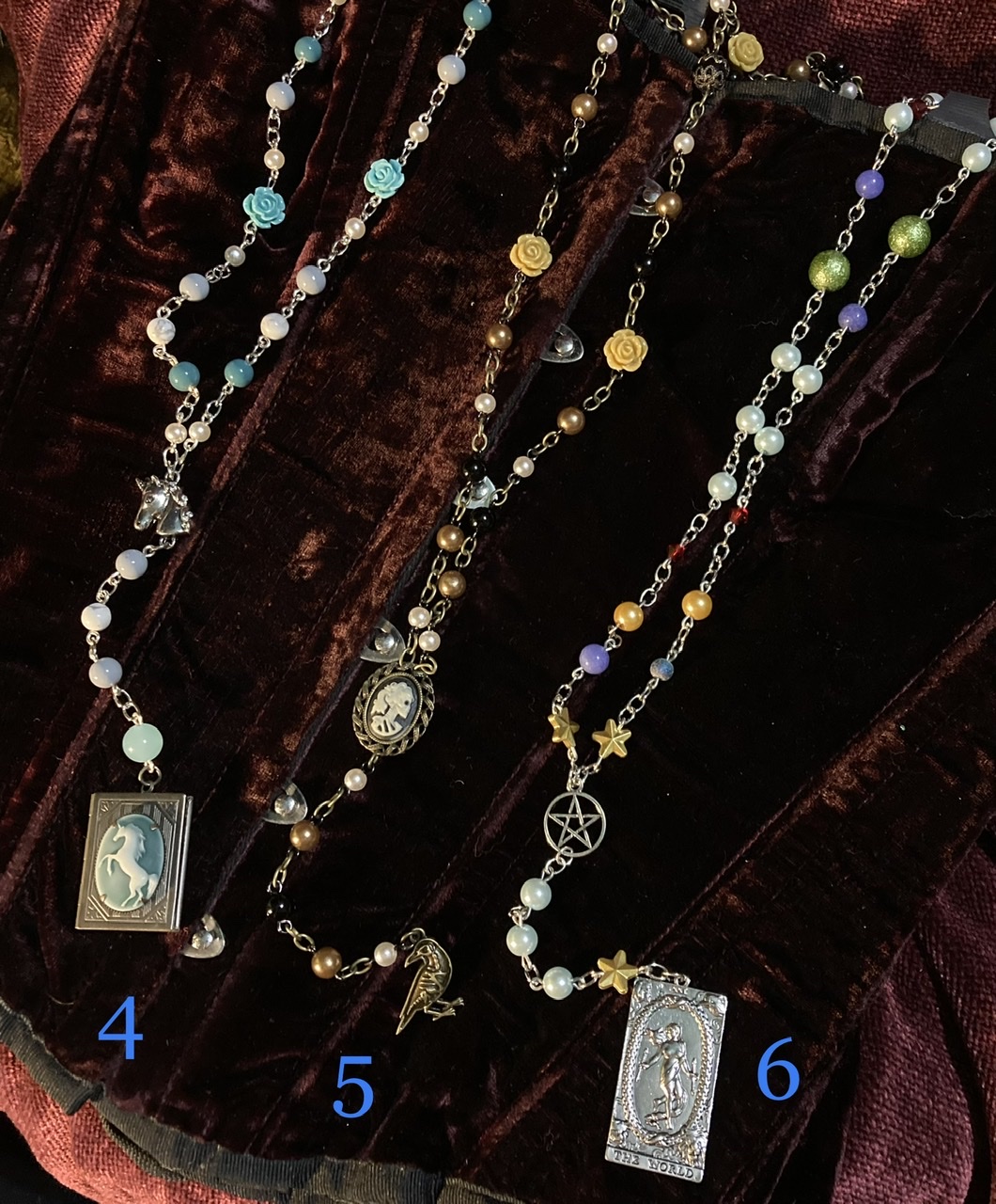 Fair Knight- 21in length Kelpie- 20in length Lady of the Lake- 19.5in length Unicorn Locket- 20.5in length Raven- 21in length XXI- 20.5in length