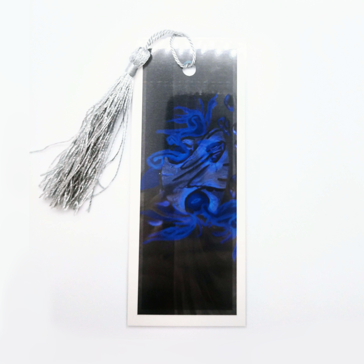 A spookier bookmark for those in a darker mood. All our bookmarks are 2x5 inches, laminated by us, and come with a tassel to help keep your place!