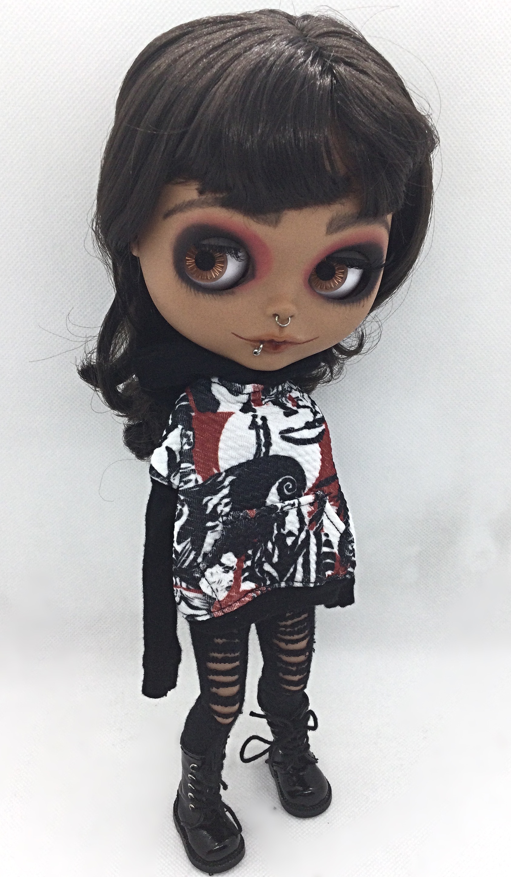 Oversized hoodie Snap back closure Tim Burton custom print Fits blythe and rainbow dolls Doll, leggings and shoes not included
