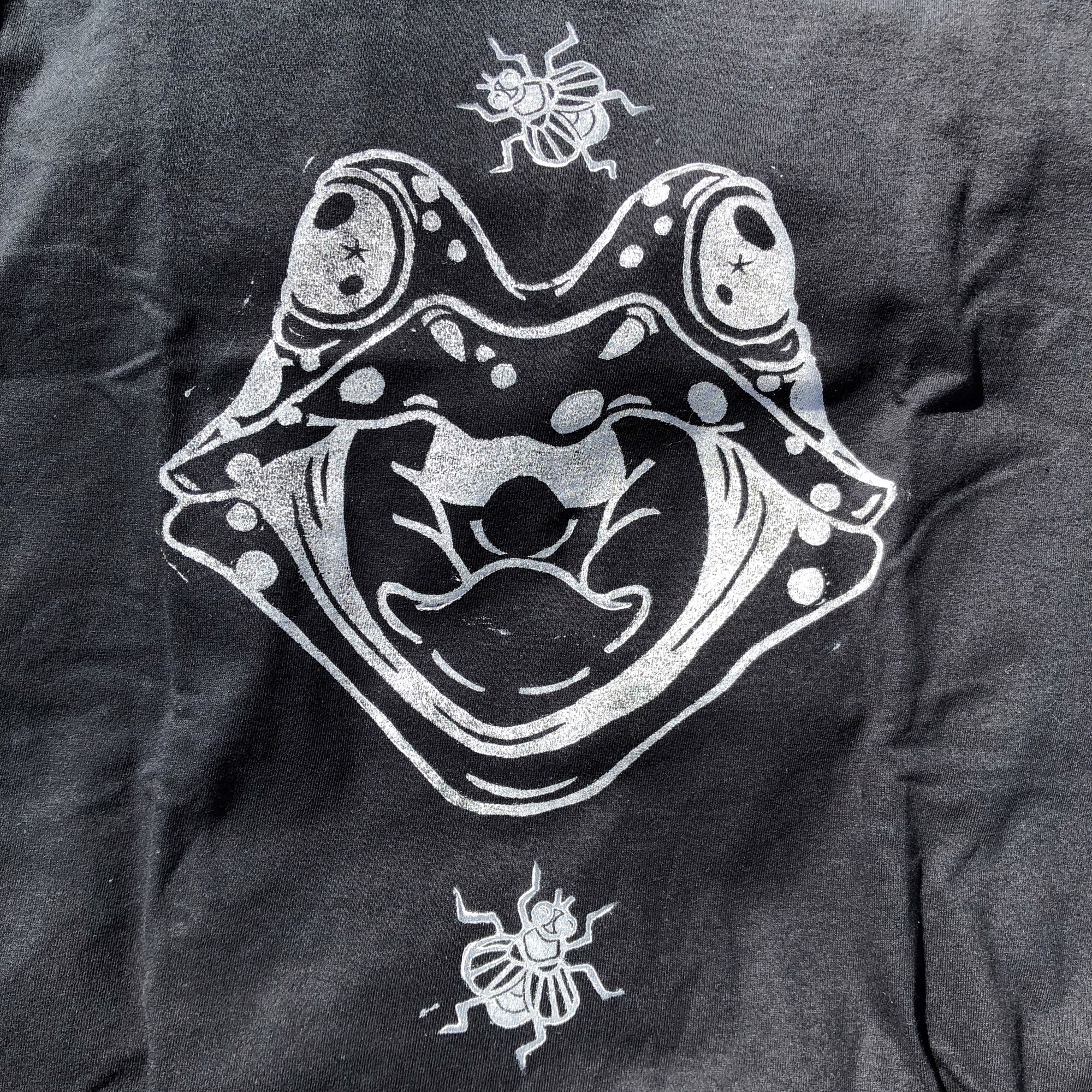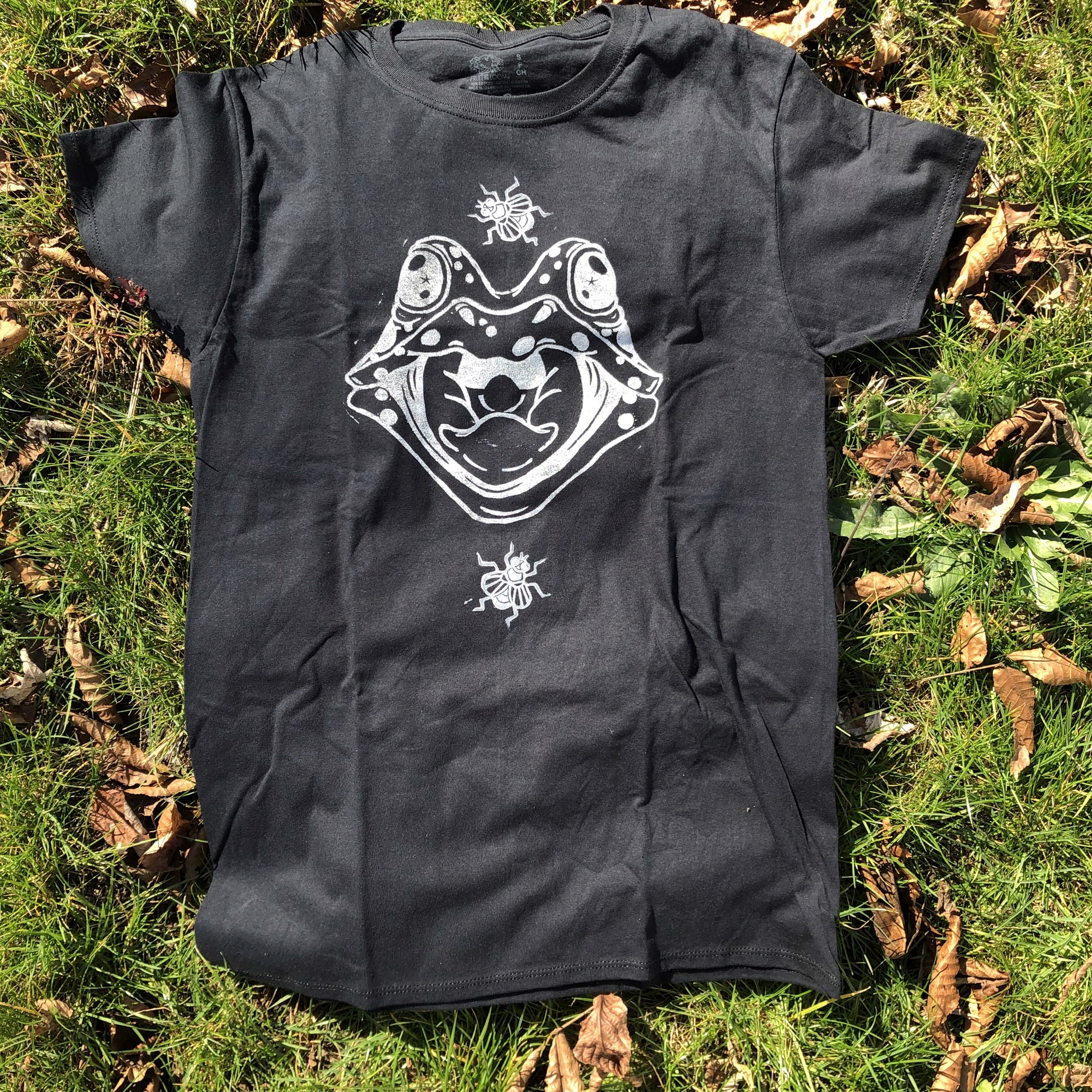 An inverted option for those who enjoy a darker wardrobe! This is a second version of my Toothy Gums fella, this time with some bugs he's trying to catch! Please allow variations from shirt to shirt as they are all handprinted, which makes them unique :) *All shirts are unisex sizing