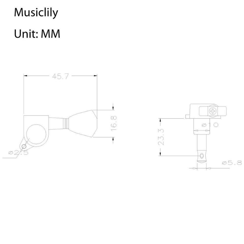 \n\n Feature\n\n\n Economy 3 Per Side Sealed Tuning Machines Set for Acoustics and Electrics guitar\n\n\n Fits standard 10mm (13/32 inch) peg holes\n\n\n Material: metal alloy; Gear ratio 1:15\n\n\n 3x3 Full set, Nut,Ferrule,Screws included\n\n\n  \n\n\n Package Included\n\n\n 6 Pcs Guitar Tuning Pegs (3R+3L)\n\n \n \n\n\n