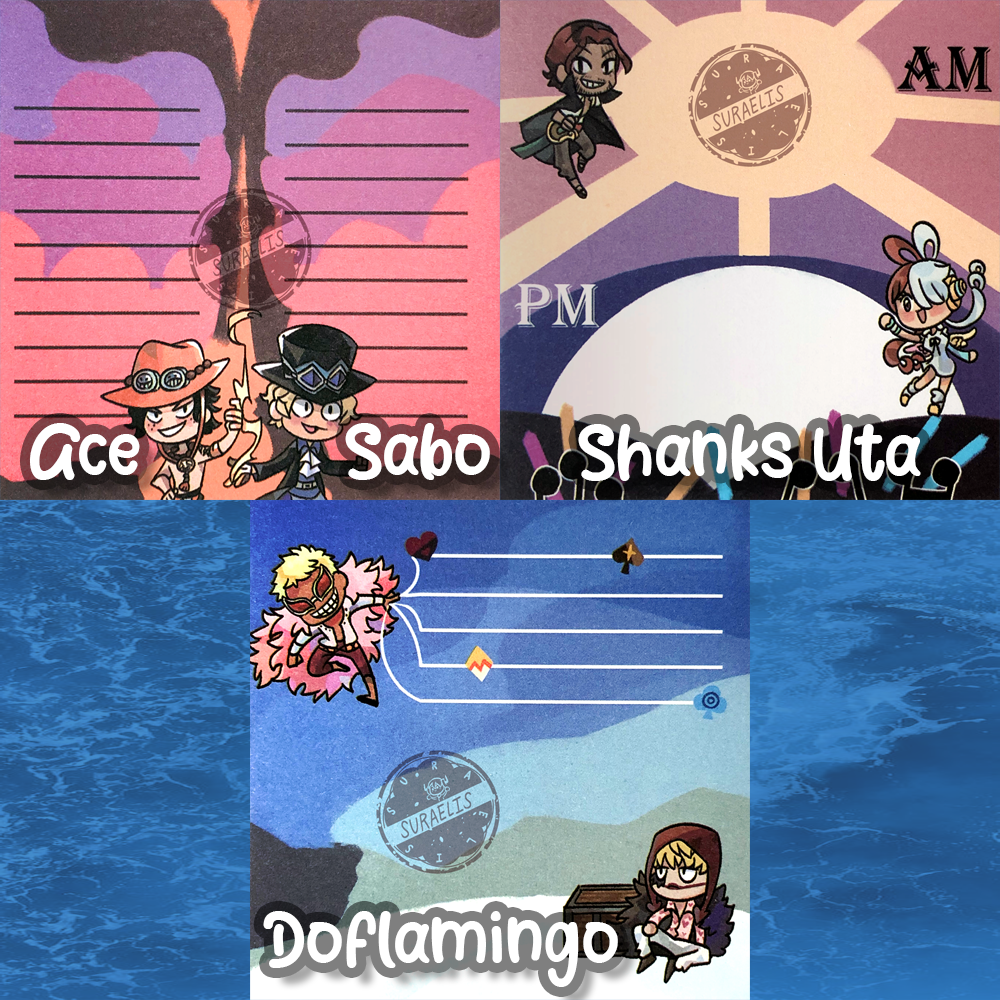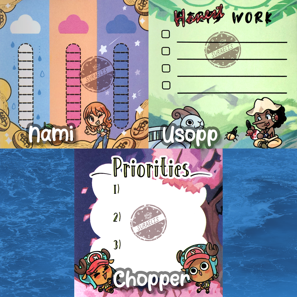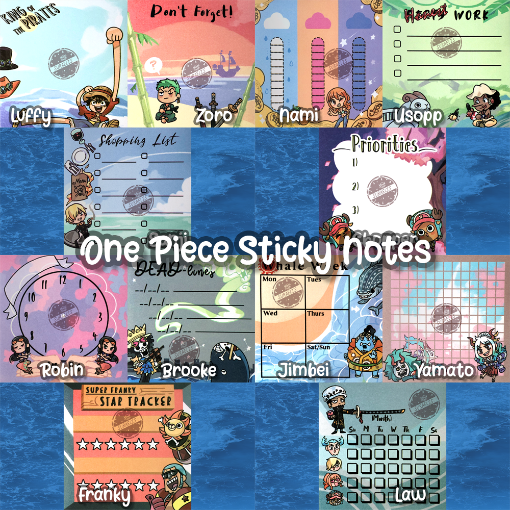 Straw Hat Pirate Crew Sticky Notes – 3in x 3in – 50 sheets each