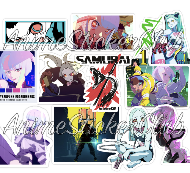 Enjoy 50 high-quality random Cyberpunk Edgerunners Anime and Manga stickers! Stickers are made from high-quality glossy sticker paper and are great for laptops, notebooks, and other items! Sets may include characters such as David Martinez, Lucy, Rebecca, Faraday and more!