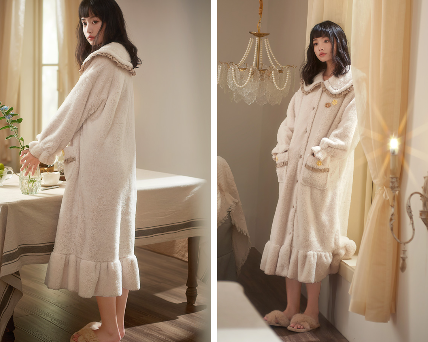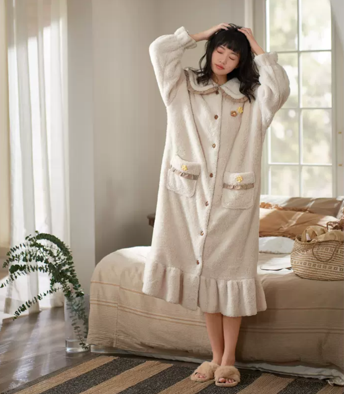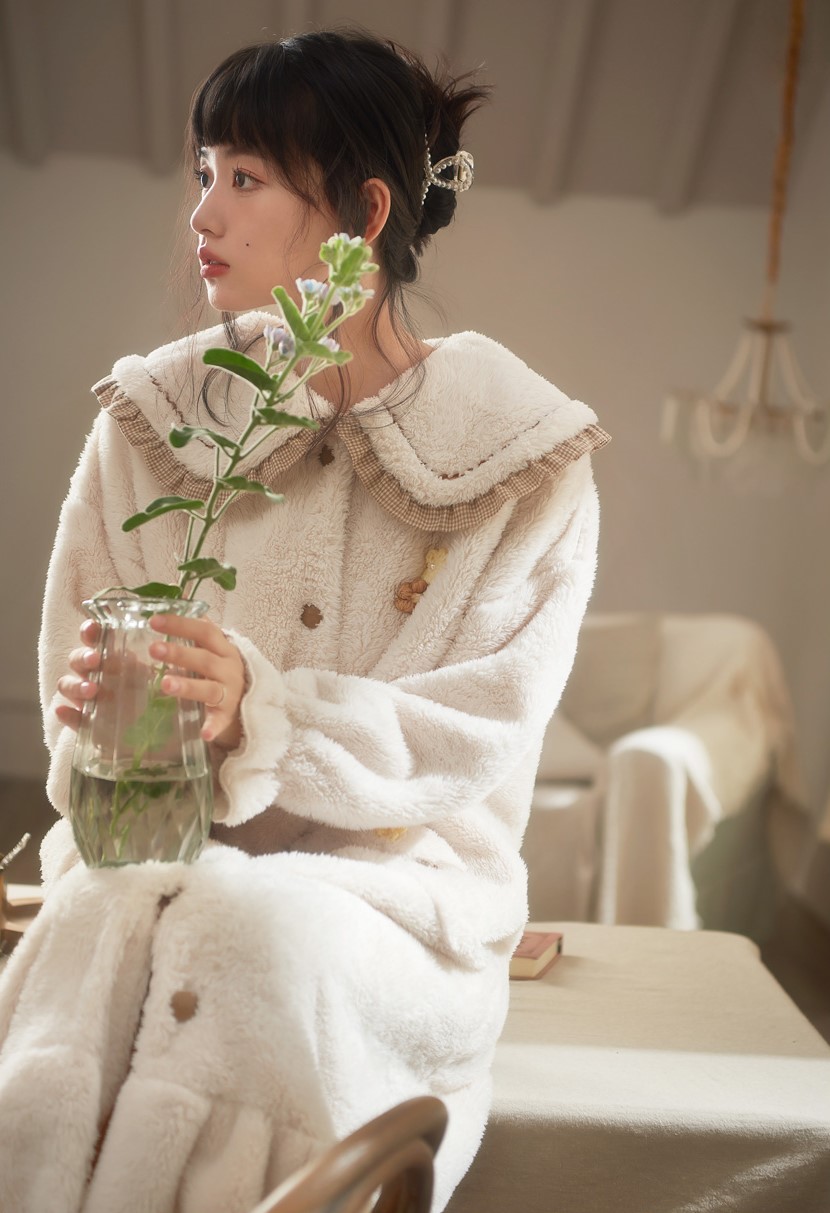 Daisy Lover Warm Loungewear Cute Winter Plush Pajamas Nightgowns-4