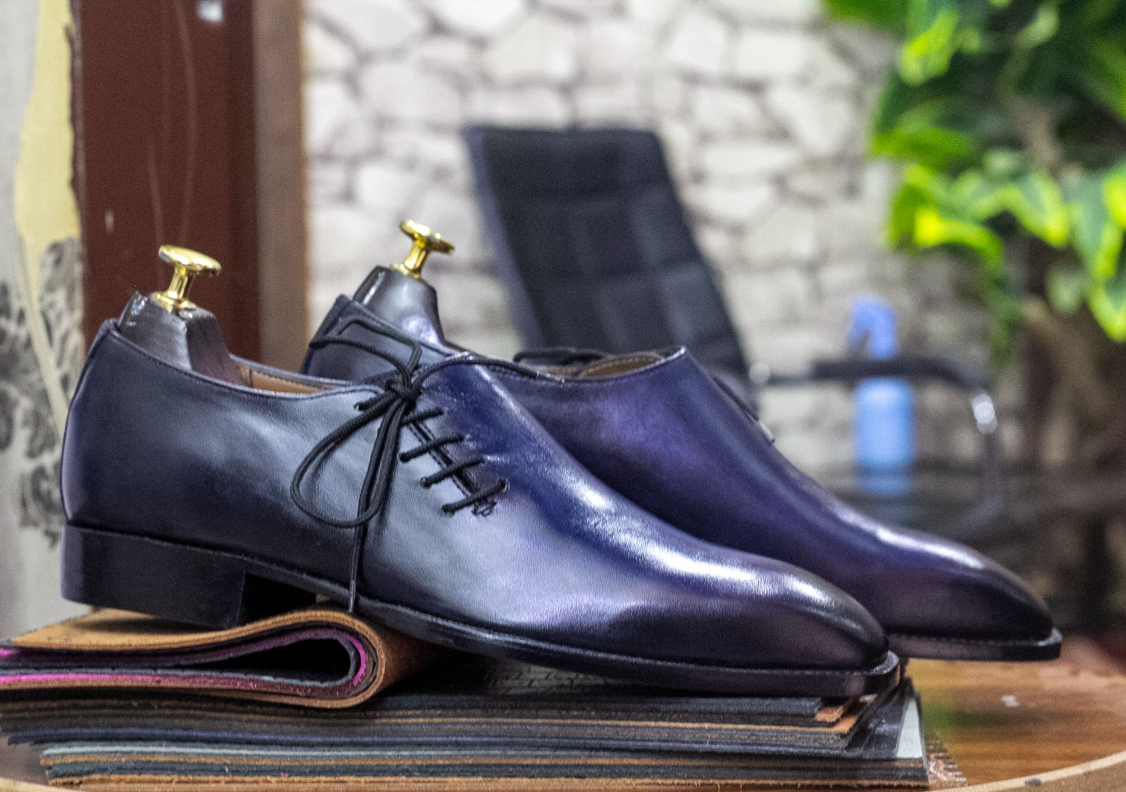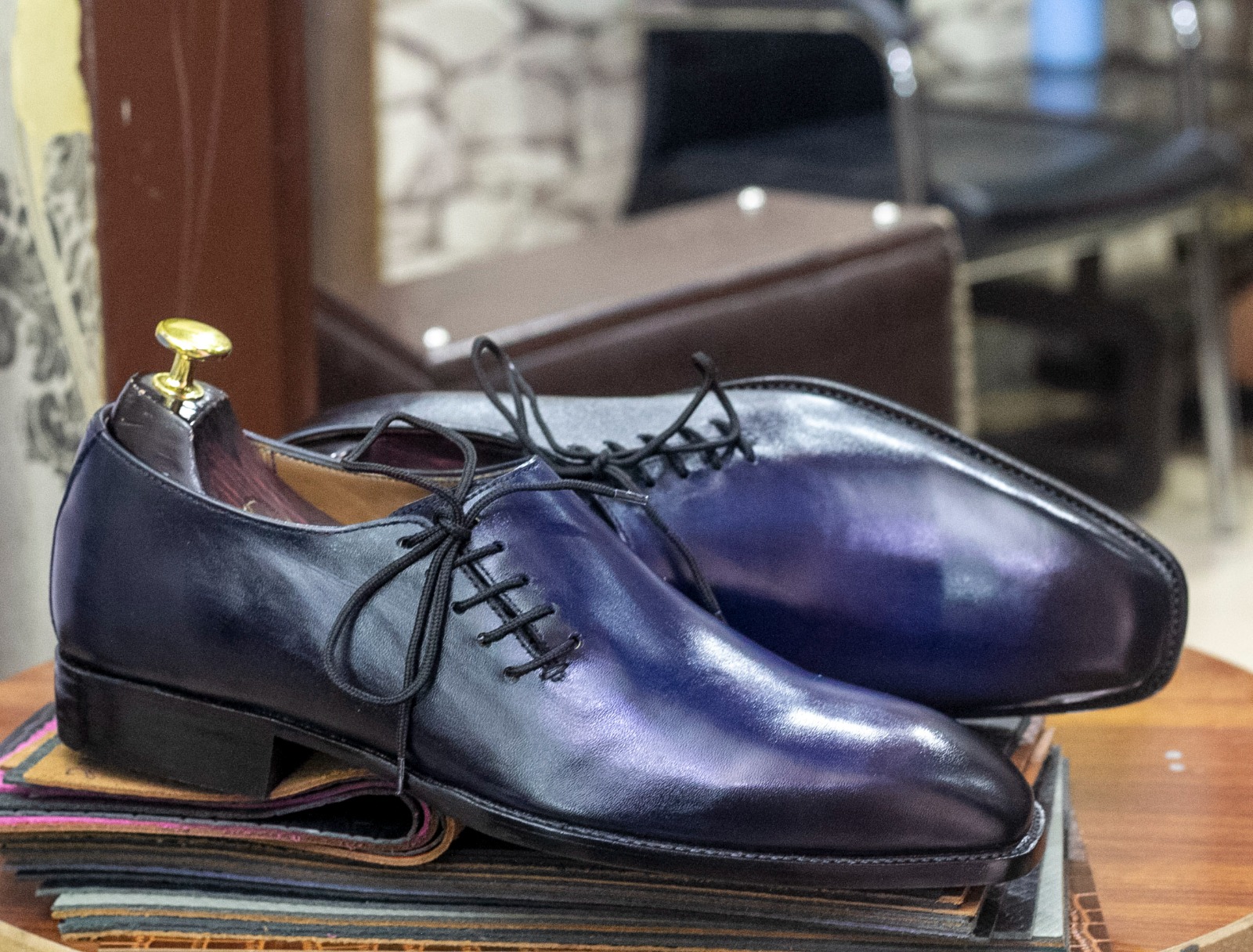 Men's Handmade Blue Colour Side Lace Up Leather Shoes, Men's Dress Formal and Luxury Shoes