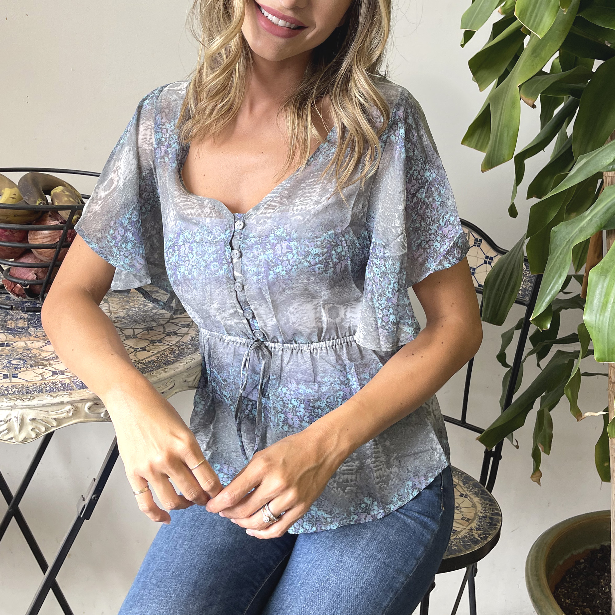 White Mark Women's Sheer Kimono Sleeve Blouse with Tie Waist