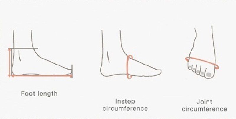 Foot length. Instep circumference. Joint circumference Choose Correct SizeOur size is according to foot length . please choose size according to foot length . 99% buyers choose right size by measuring the foot length . Let's choose the correct size according to the four steps below