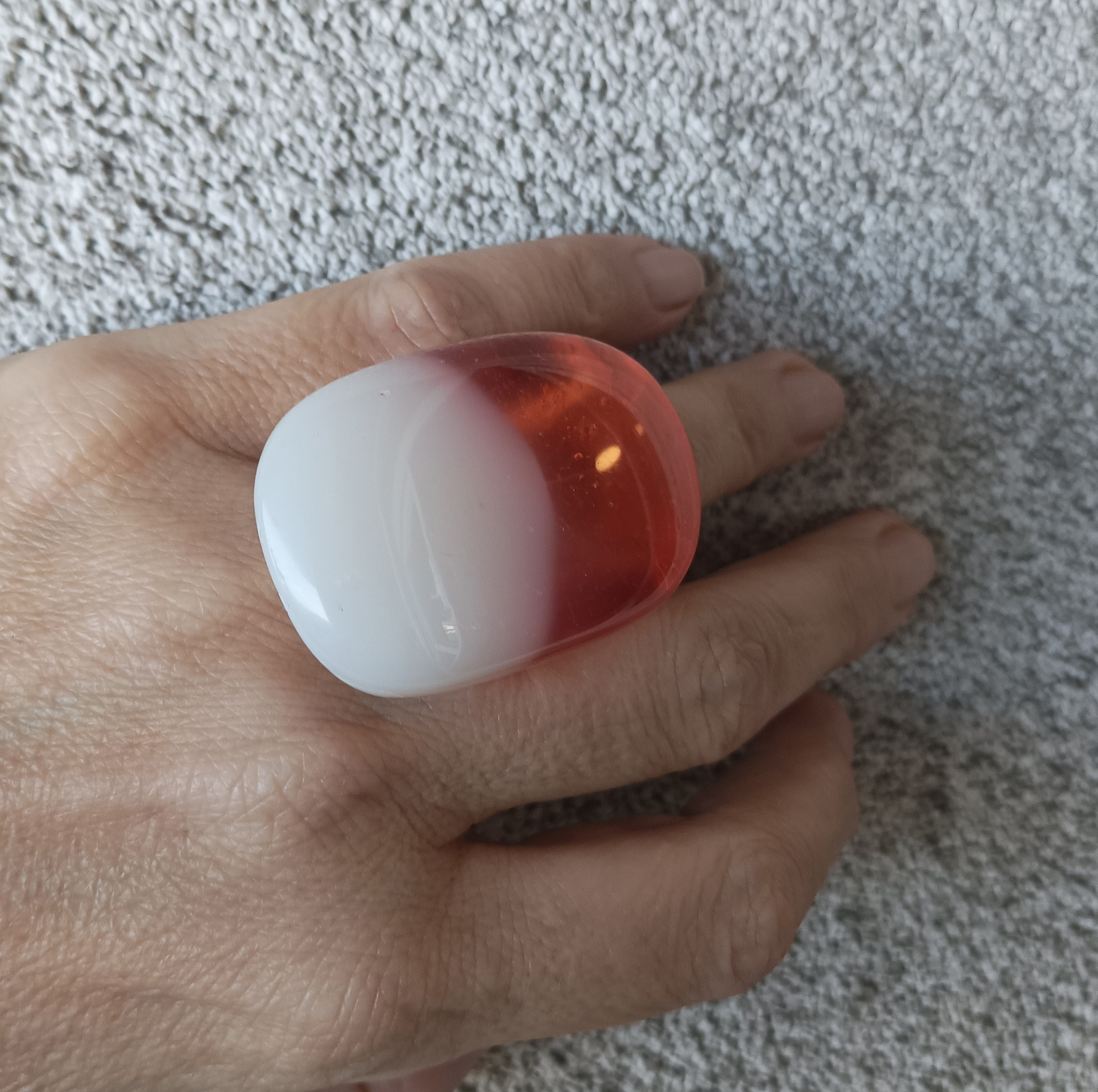 These are unique resin rings. Rings are shaped in handcrafted moulds. We will adjust the ring to your finger size.