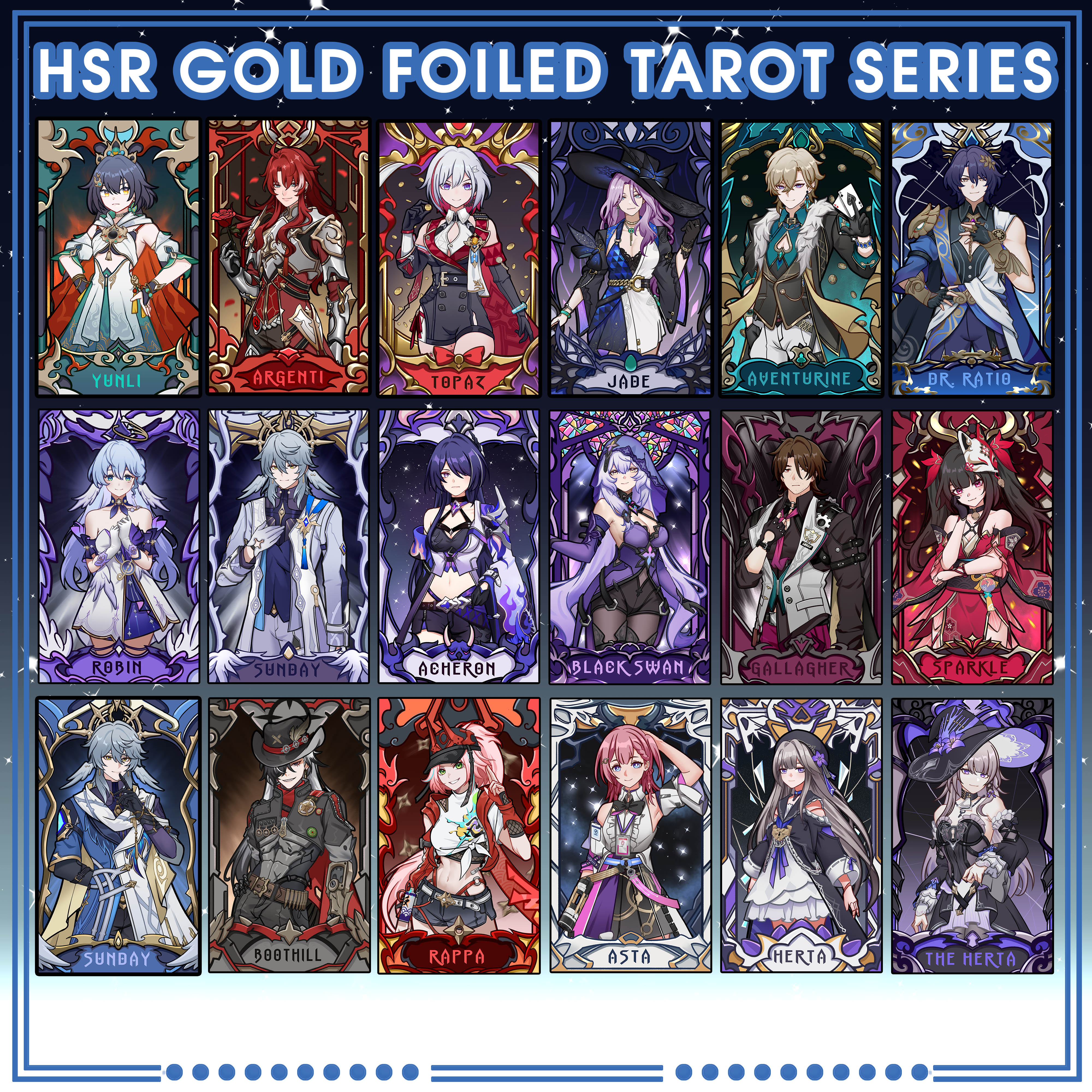 Tarot size (7cm x 12cm) Gold Honkai Star Rail and Genshin Cards, giving it a more luxurious feeling to it.