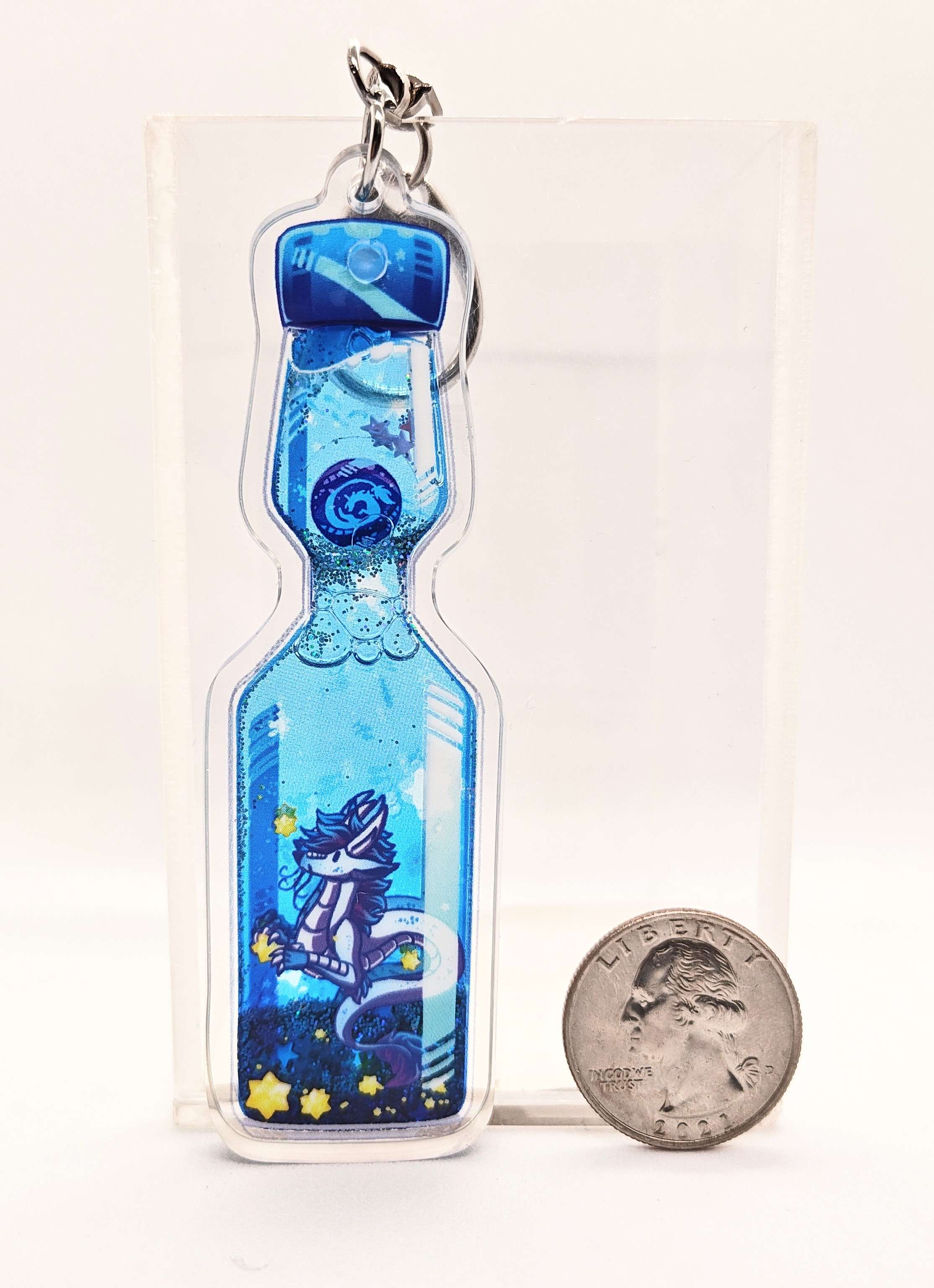 A special member of our dragon drink series! This is a liquid shaker keychain, with two small acrylic pieces and glitter swirling around inside the acrylic charms. Like our traditional Dragon Drinks, these charms are double sided, with a transparent edge, and their size varies between each drink, ranging from around 3 inches at the widest. The final product is watermark free!