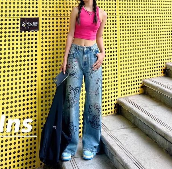 Material:Jean Waist height: High waist Length:Trousers Popular elements: Hiphop