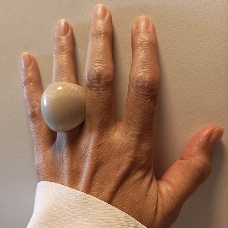 This ring stands out with it's minimlistic elegance. Soft beige colour shines on your hand.
