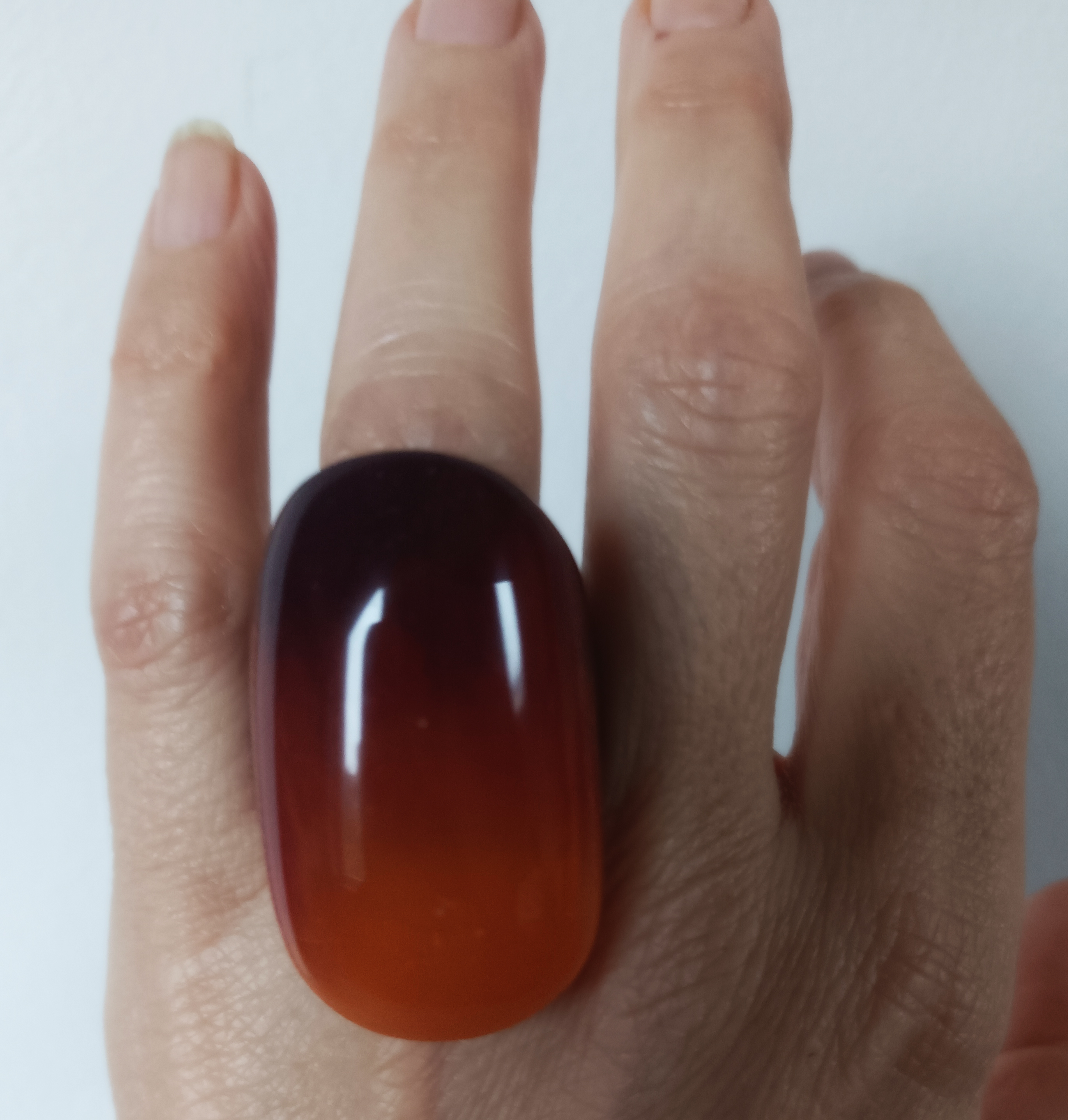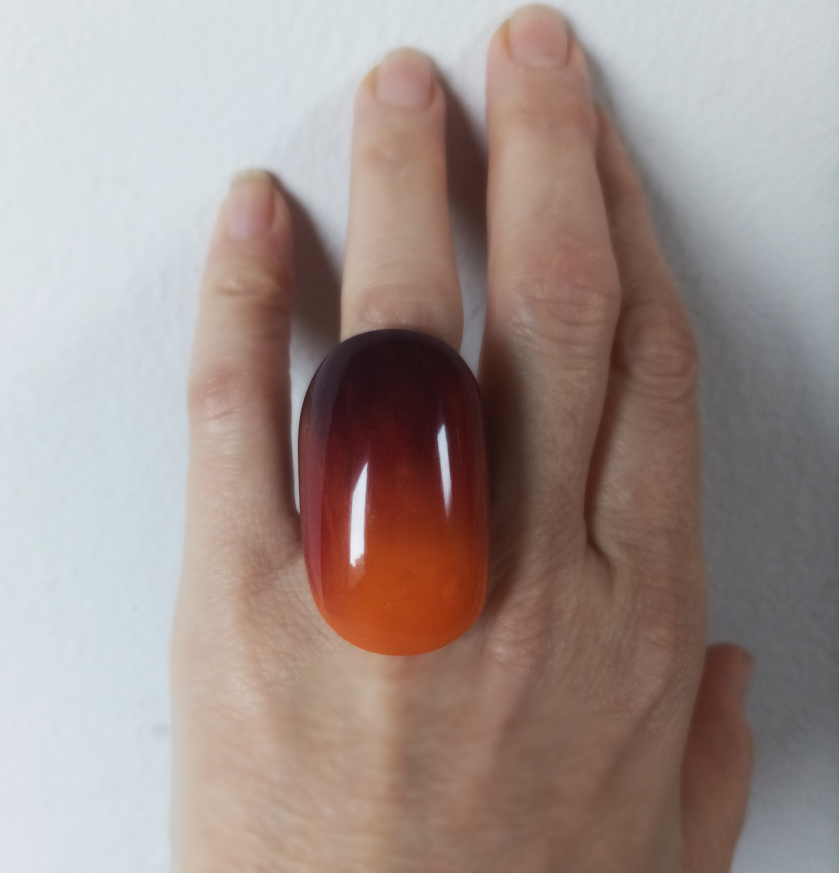 Orange colour softly melted into deep purpleness on the surface of this ring.
