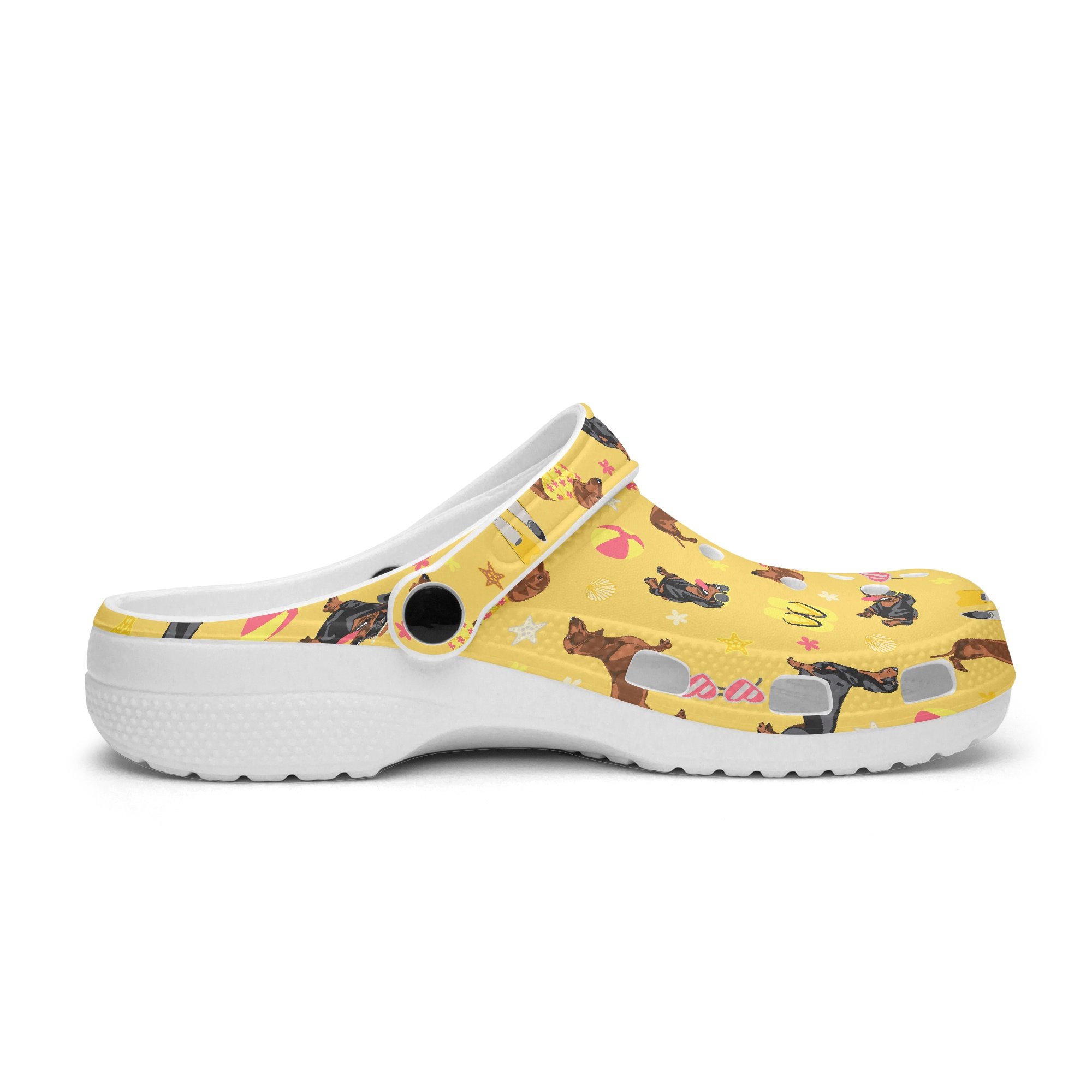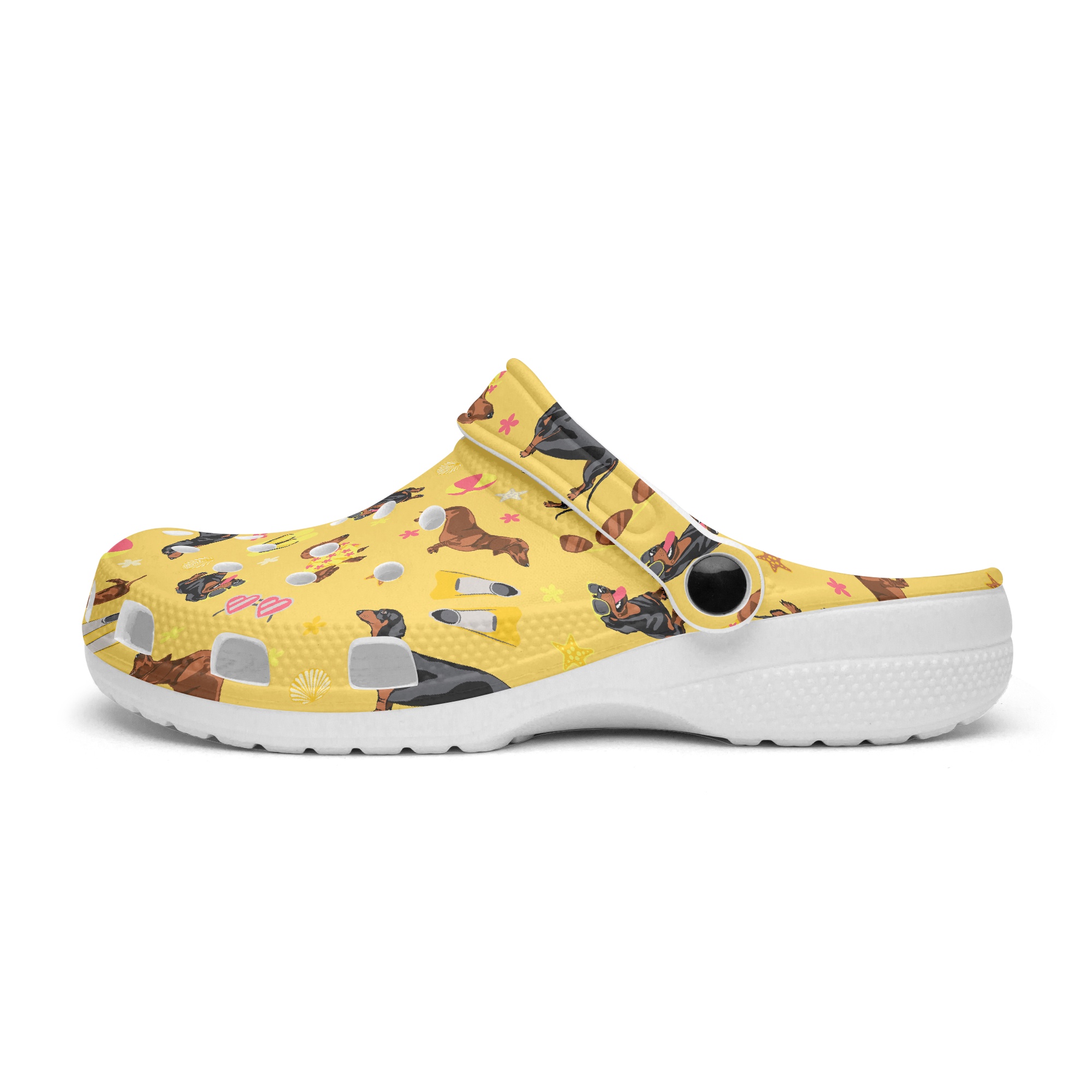 May I introduce? - Our versatile and super comfortable classic clogs with a dachshund pattern! A comfortable all-round shoe that you will fall in love with every day. The comfortable Dachshund clogs offer you easy wearing comfort and are also fun to look at. Perfect for anyone who wants to feel completely comfortable.