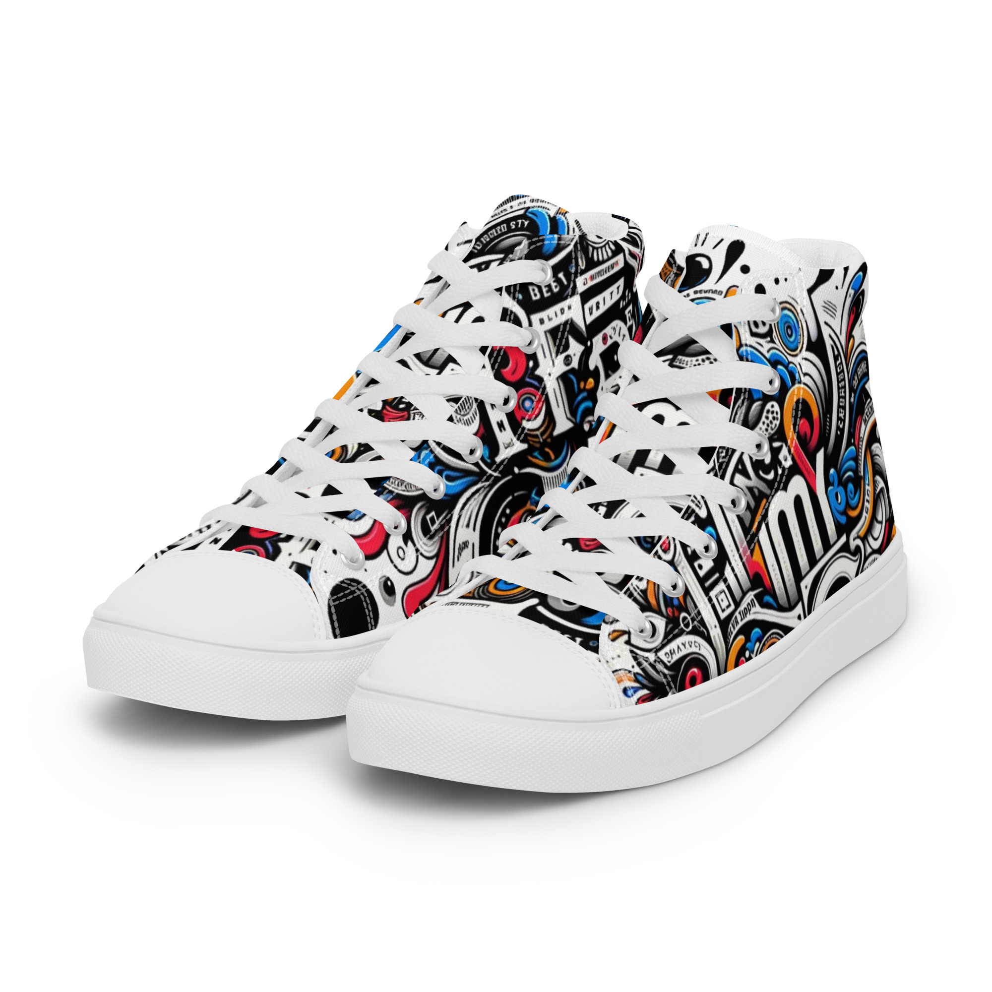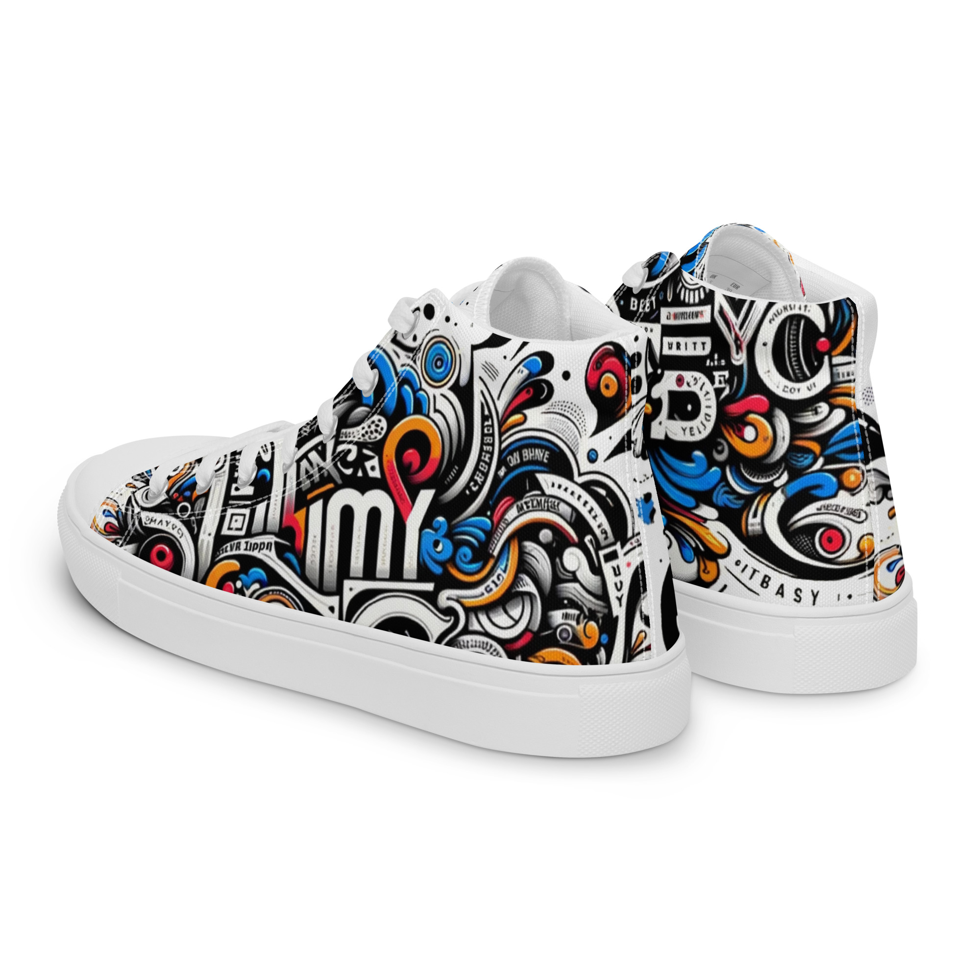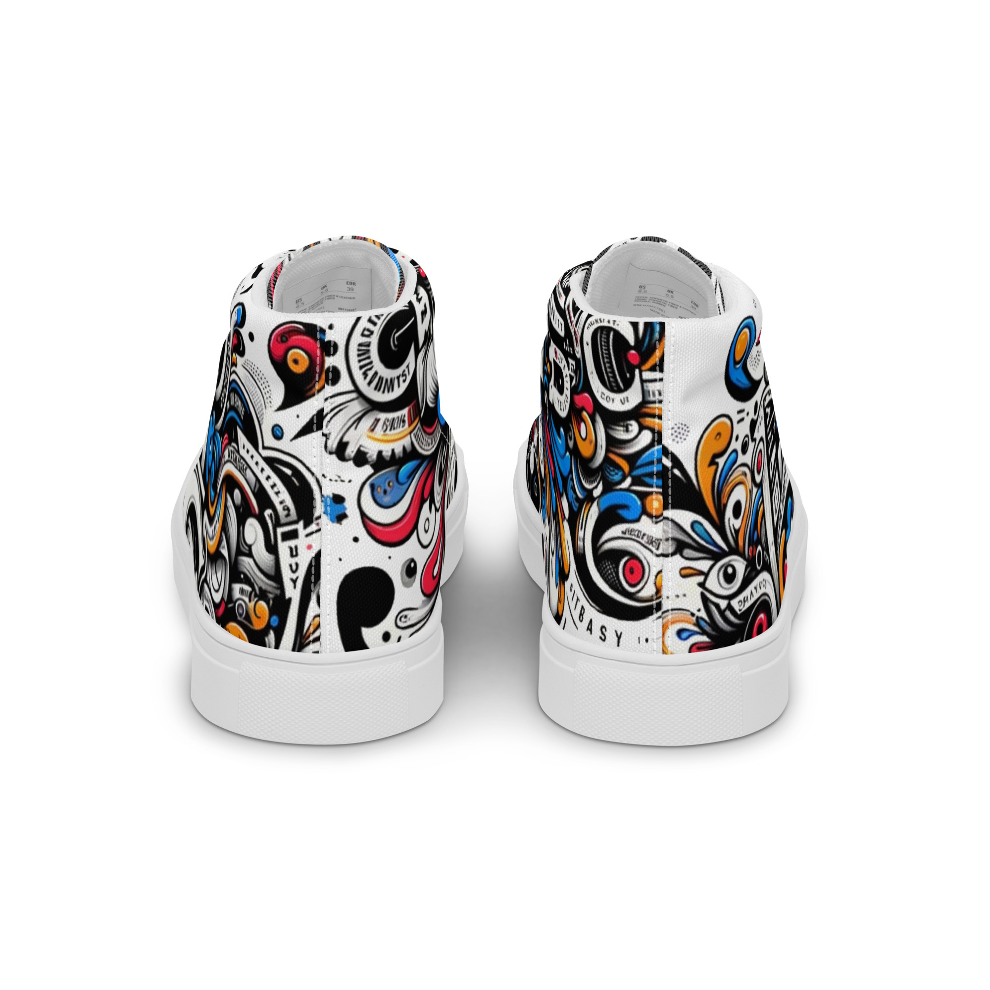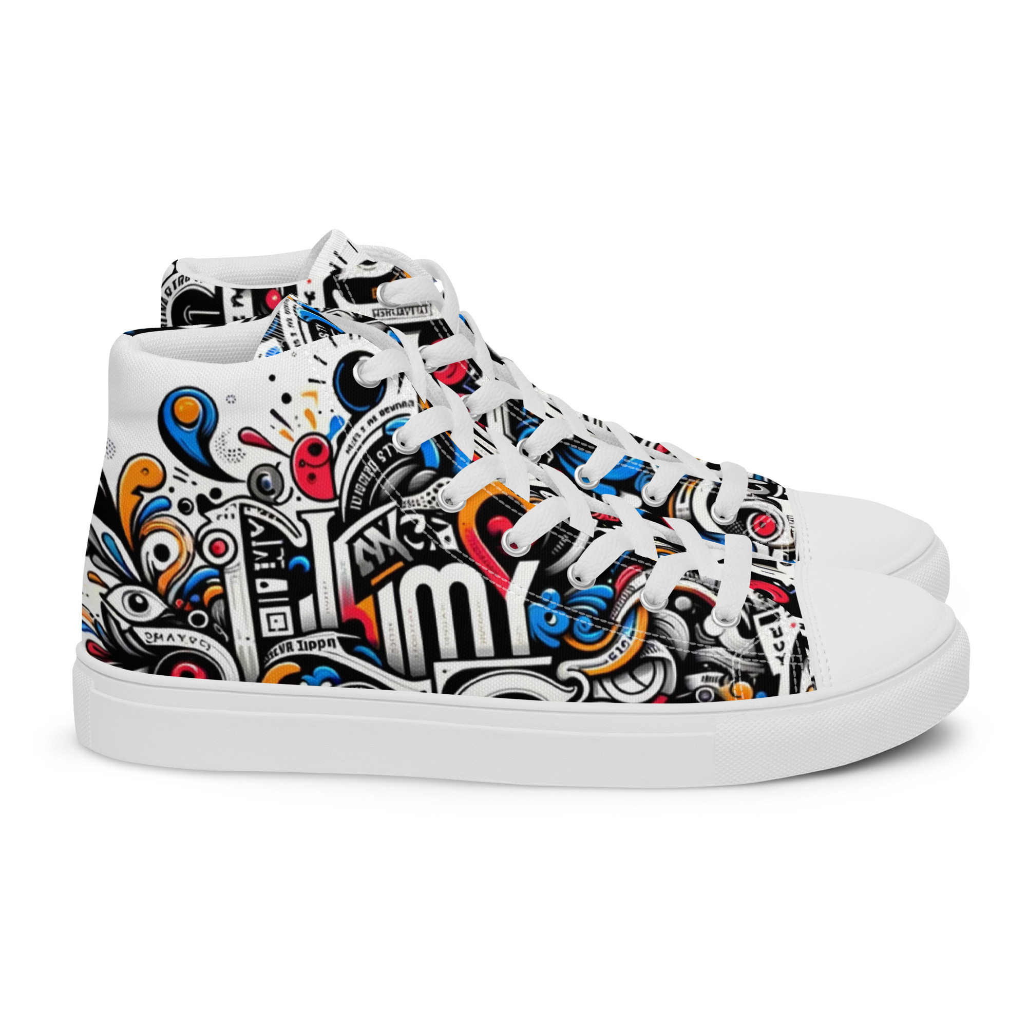 Avatar Nation Men's high top canvas shoes, printed with original artwork. 100% polyester, canvas upper side Ethylene-vinyl acetate (EVA) rubber outsole Breathable lining, soft insole Faux leather toe cap Padded collar, lace-up front