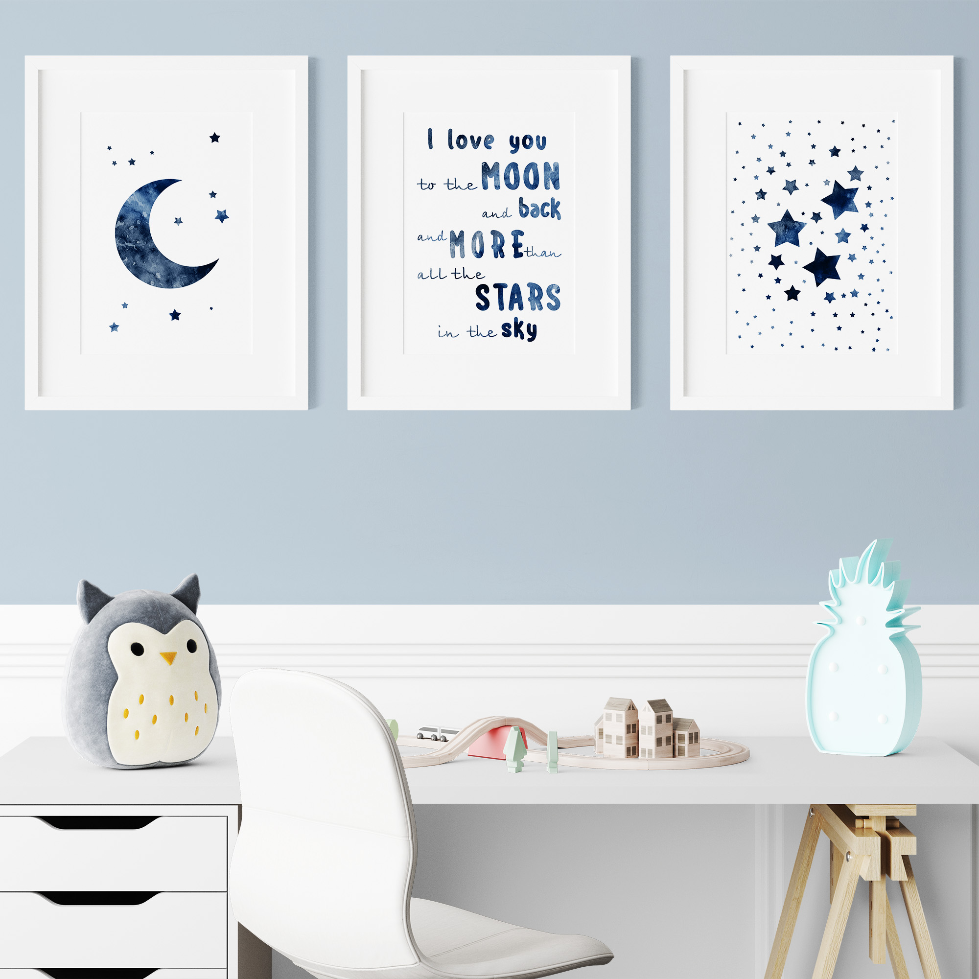 Navy blue nursery decor, Moon and Stars for boys room decor, I love you to the moon and back.