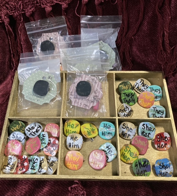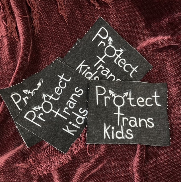 Pride pins made from bottle caps, soda tabs, and safety pins. Usually only available at in-person events, but I’m gonna test the waters of listing them here. I’ve got pride flags and pronouns. Pronoun design will be randomly selected from the set of pronouns you choose. You can leave a note at checkout to specify a vibe/aesthetic if you’d like. Protect trans kids patches are 5x4 in (ish). Have already been heat-set, but I advise to put a cotton cloth over it and iron it before first wash. Any residual marking lines on patch will go away with first wash. Unfinished edges, it will fray unless sewn onto something.