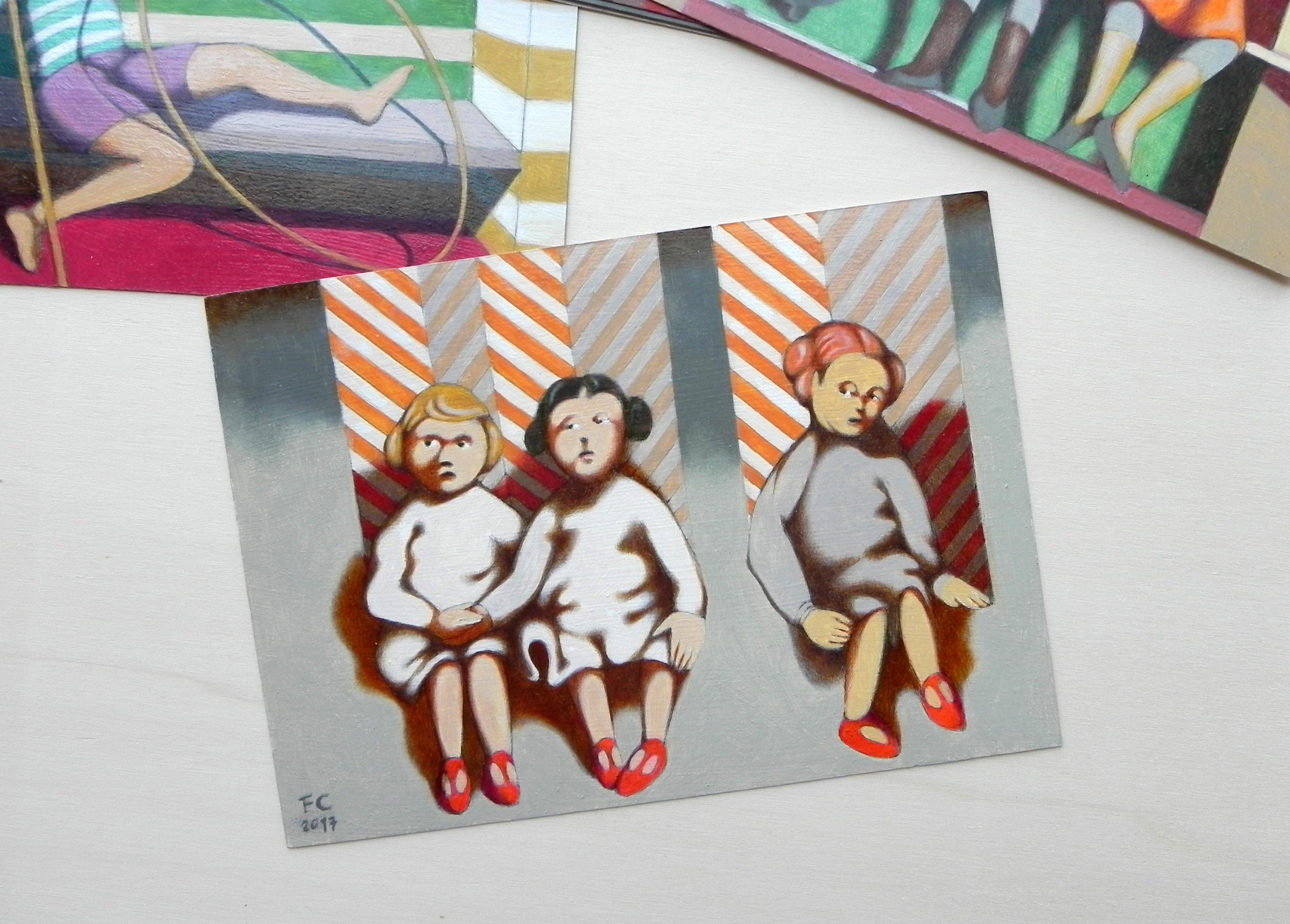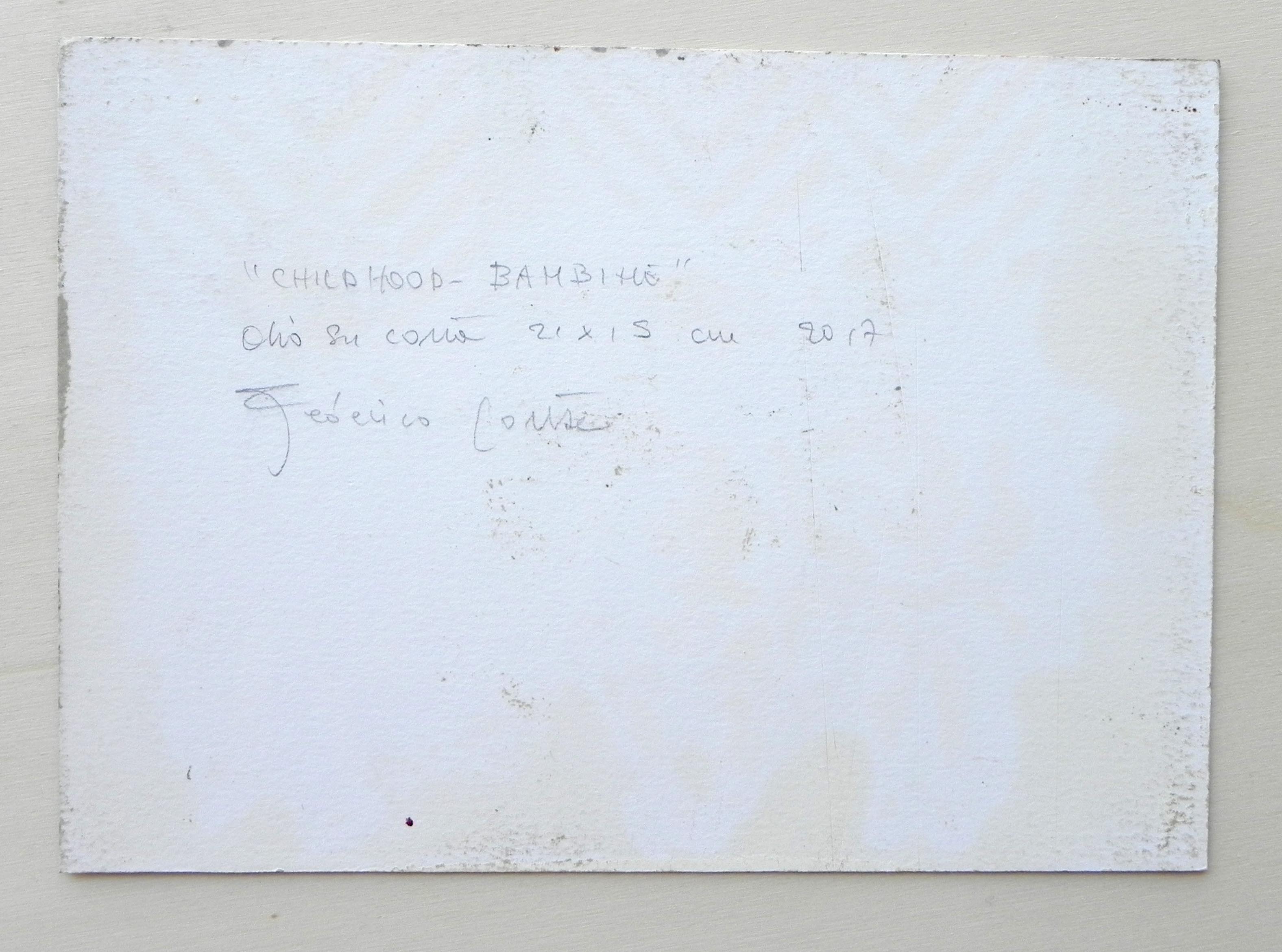 Summary of features - Artist: Federico Cortese / Title: Childhood, envy / Quantity: 1 (original painting) / Conditions: excellent / Medium & materials: oil on thick paper / Dimensions: 21 x 15 cm (8.2 x 5.9 in) / Finishing: protective varnish (transparent mastic paint) / Location and year created: Turin, Italy - 2017 / Certificate of Authenticity: included, with signature of the artist on photograph / Signed: on the back / FREE SHIPPING WORLDWIDE!