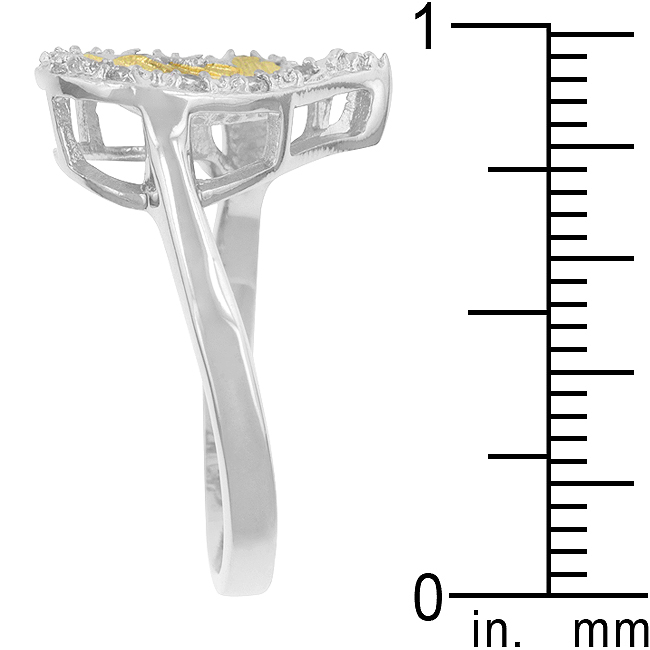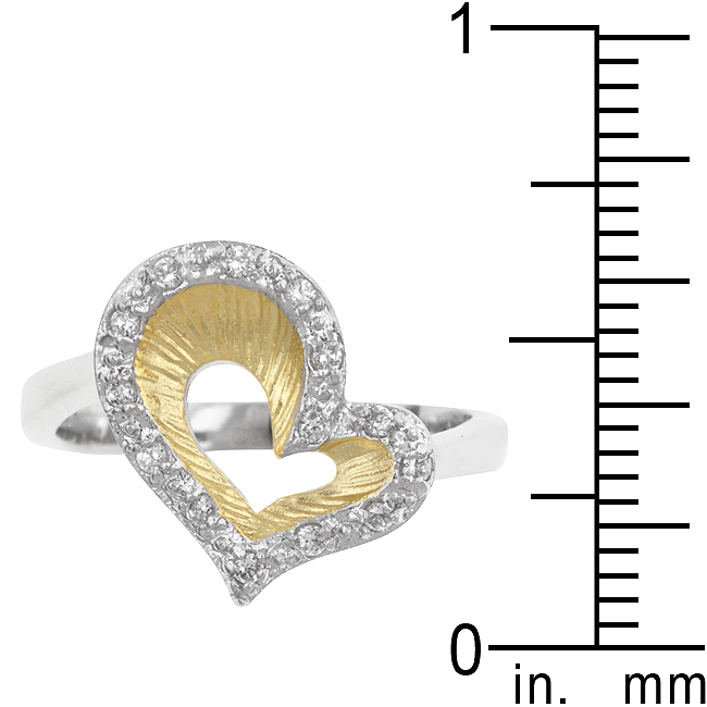 'White Gold Rhodium and 14 K Gold Bonded Heart Inspired Ring with Round Cut Clear Cubic Zirconia Accents in a Silver and Goldtone'