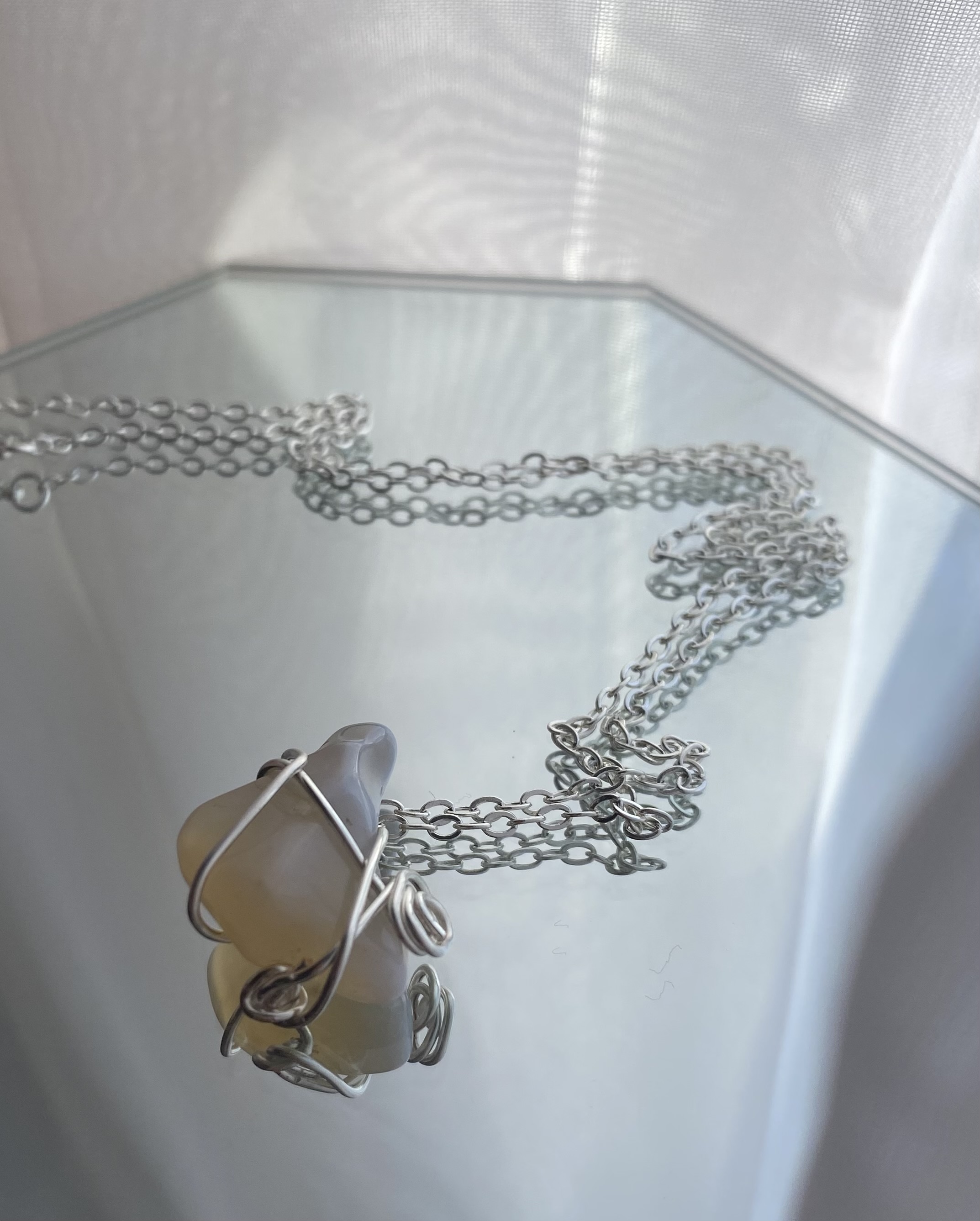 Wire wrapped polished agate necklace. Beautiful colors in the sun. Made with non tarnish materials.