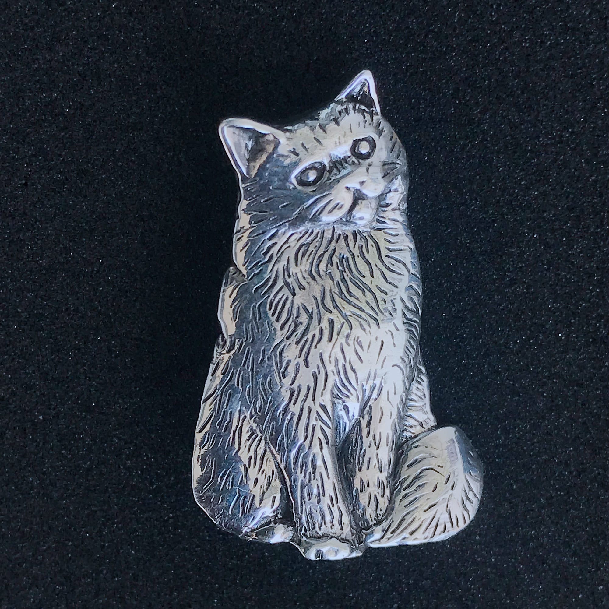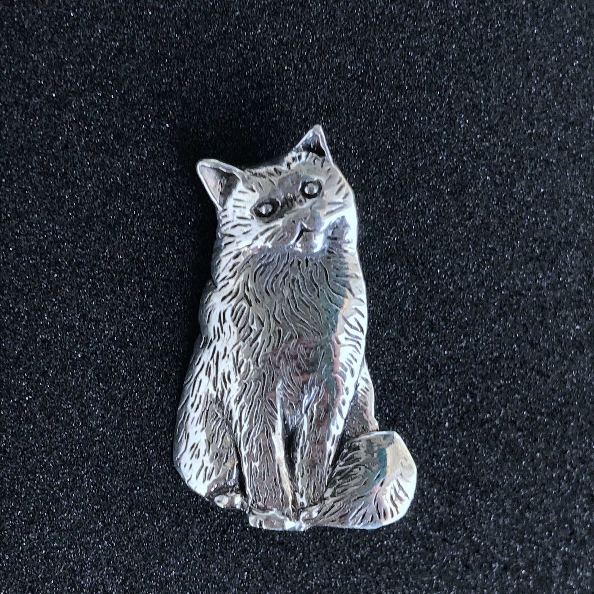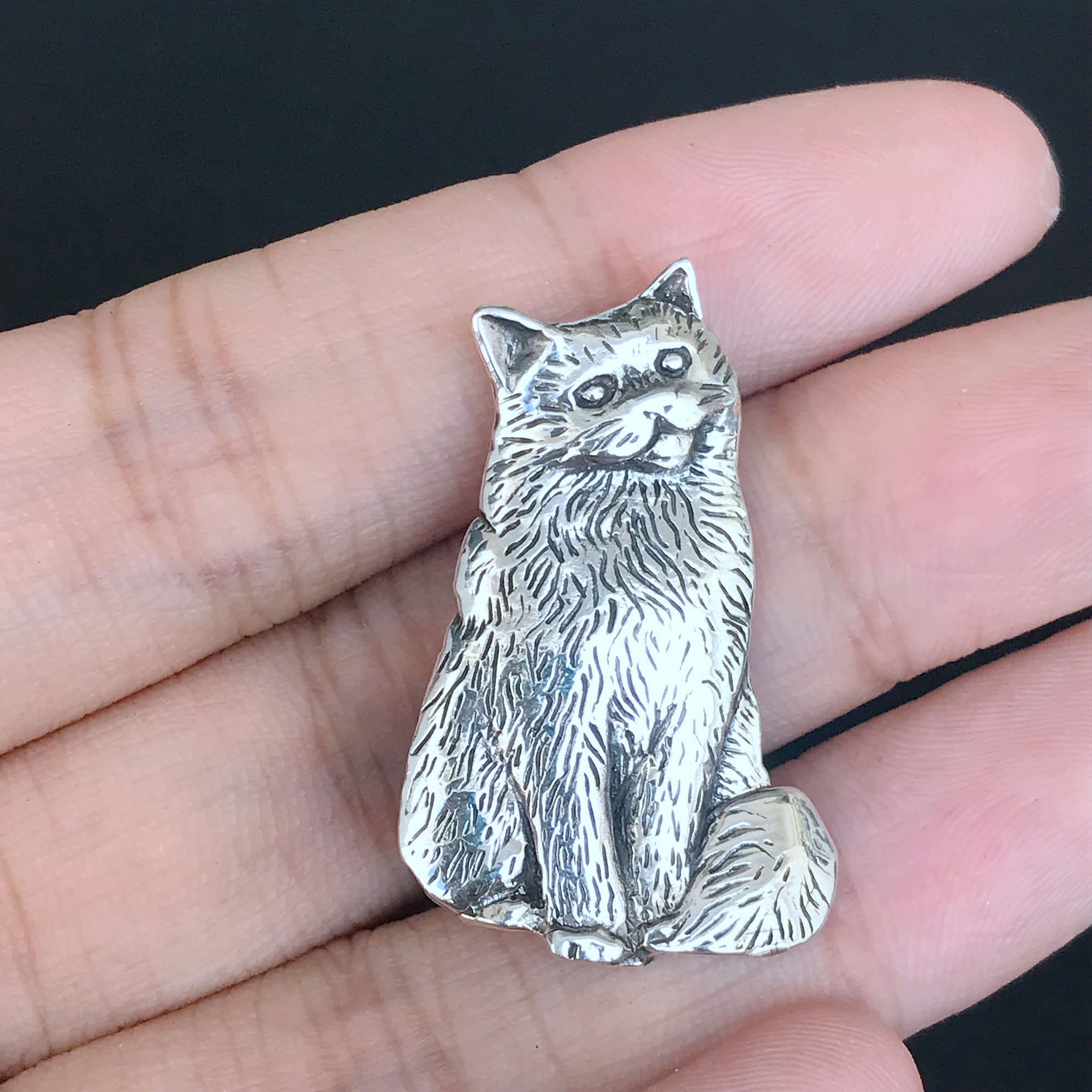 Silver Cat Brooch 925 Sterling Silver Simple Brooch Animal Pin Jewlery for Cat lover