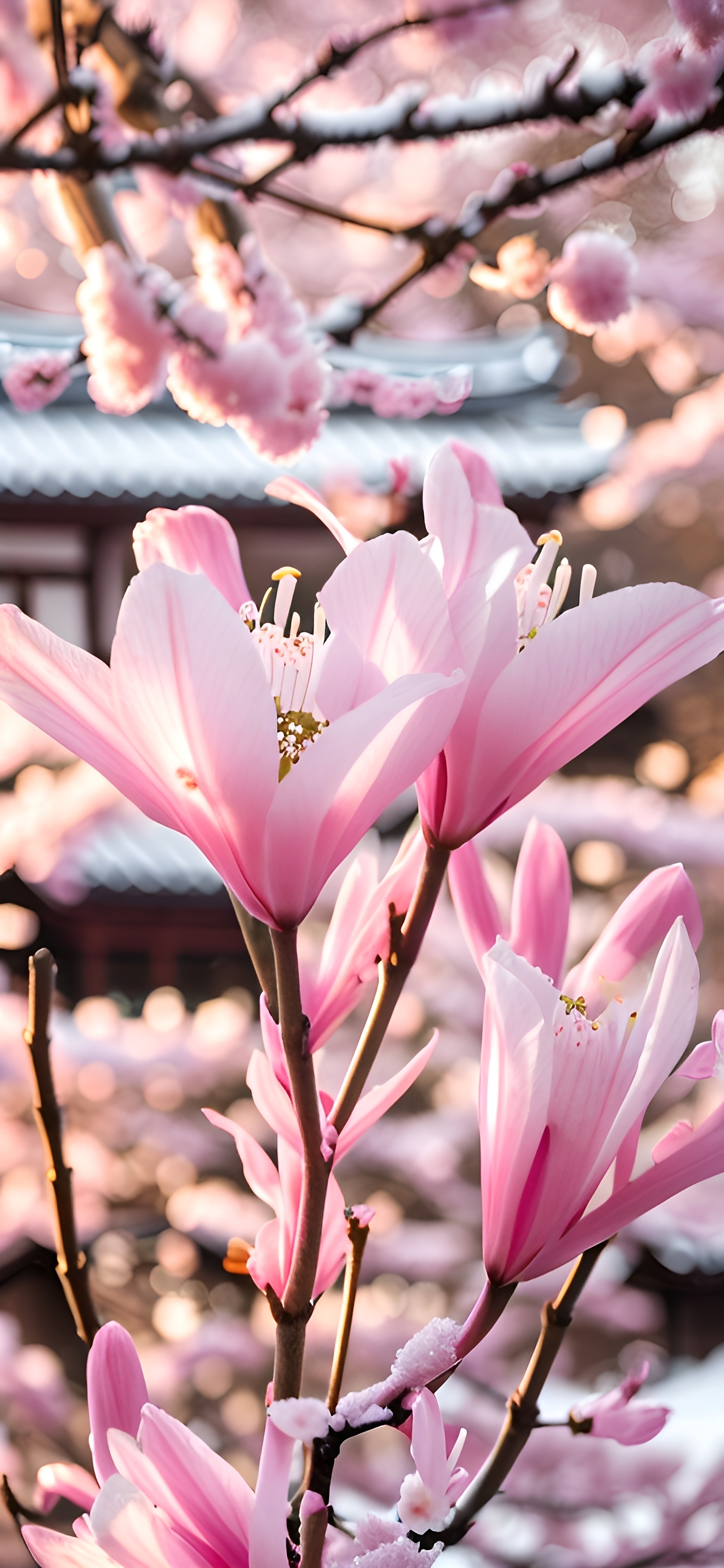 This cross stitch pattern depicts a picture of the beauty of magnolia flowers.