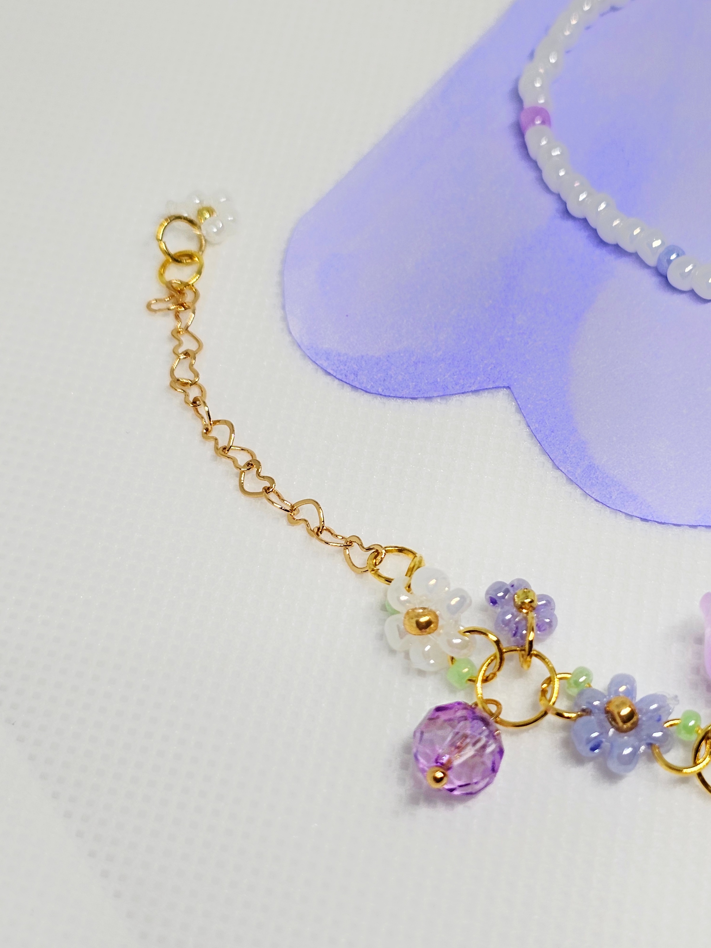 Purple Lily Bracelet Set with Glass beads, Gold Plated Wire and Clasp-3