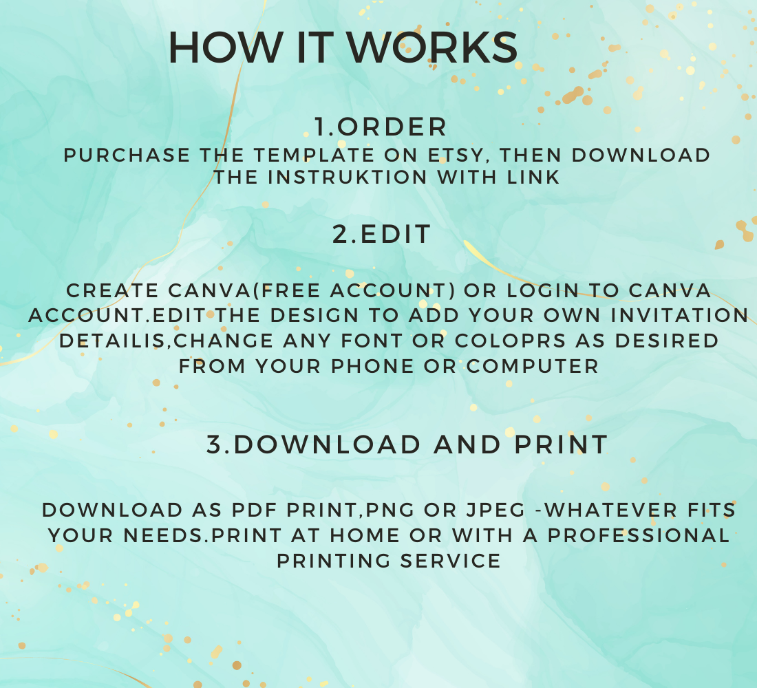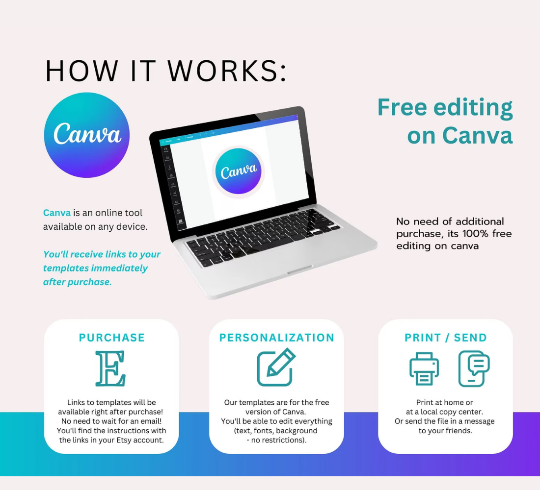 Once payment is confirmed, you will get an email sent to your registered Etsy account, containing the link for you to access your editable design. Make sure the e-mail address registered in your Etsy account is current.