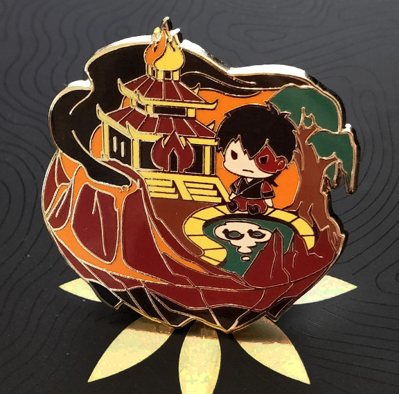 Highlighting the fiery lands of the Fire Nation, this pin is larger than the usual pin for the details to shine through! 2 inch Gold-plated Enamel Pin Butterfly clasp backings