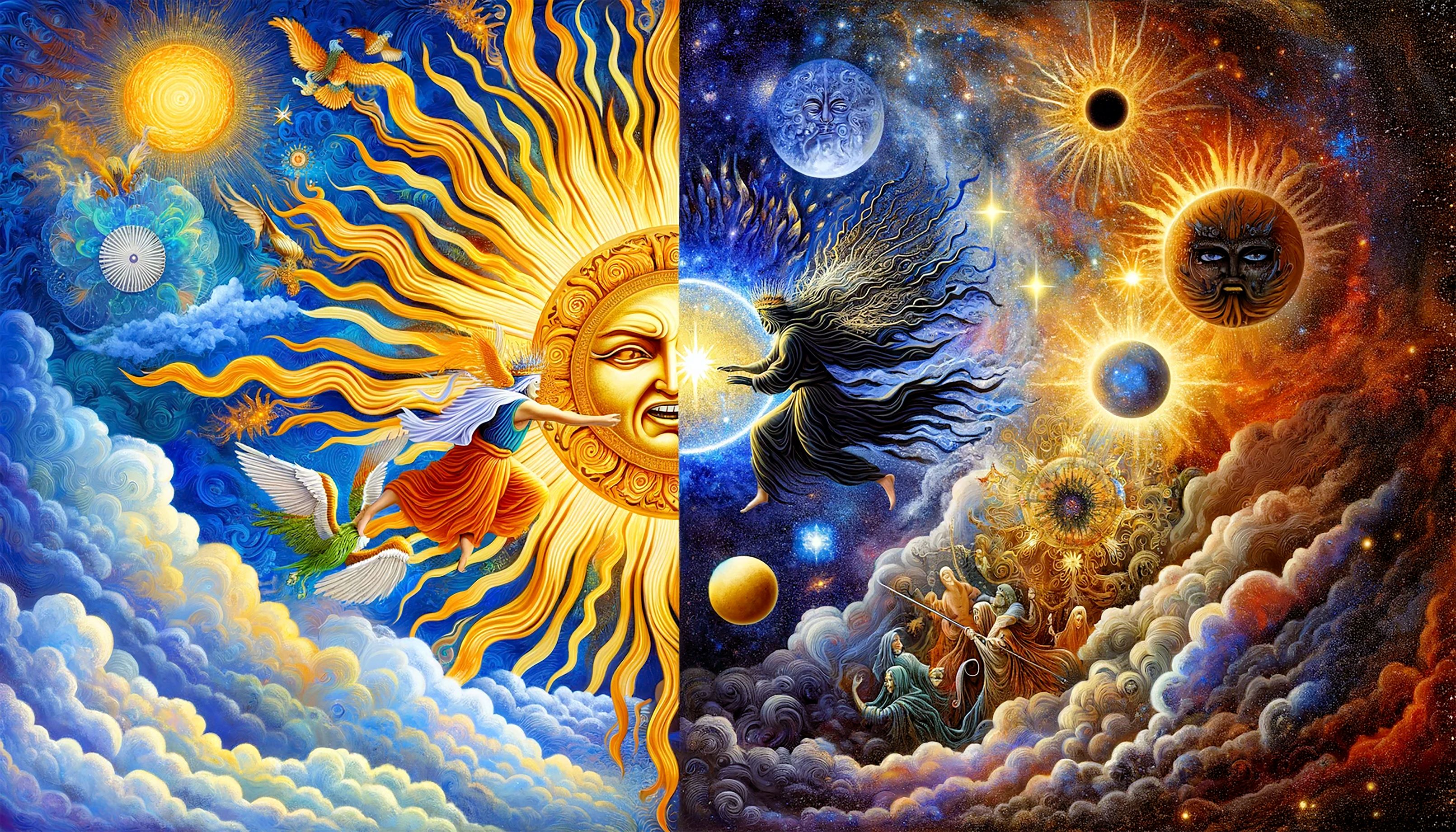 This cross stitch pattern depicts a picture depicting the two halves of a day.