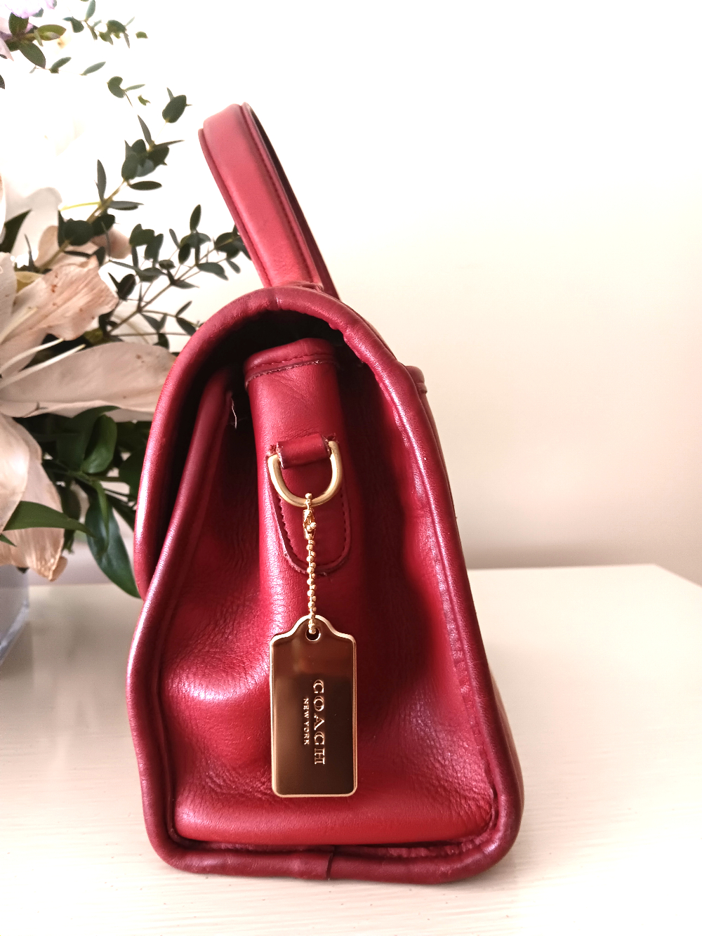 Vintage Coach Manor in good used condition. Light pen marks underneath flap. Strap is not included. Goldtone hang tag is included. Measurements are approx: 9 3/4" (L) x 8 1/2" (H) x 4 1/4" (W) ***Please address all questions and concerns to our attention prior to ordering*** ***All sales are final***