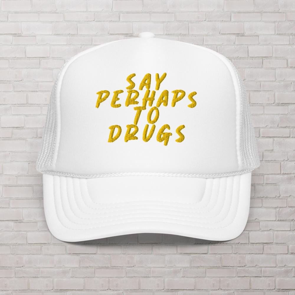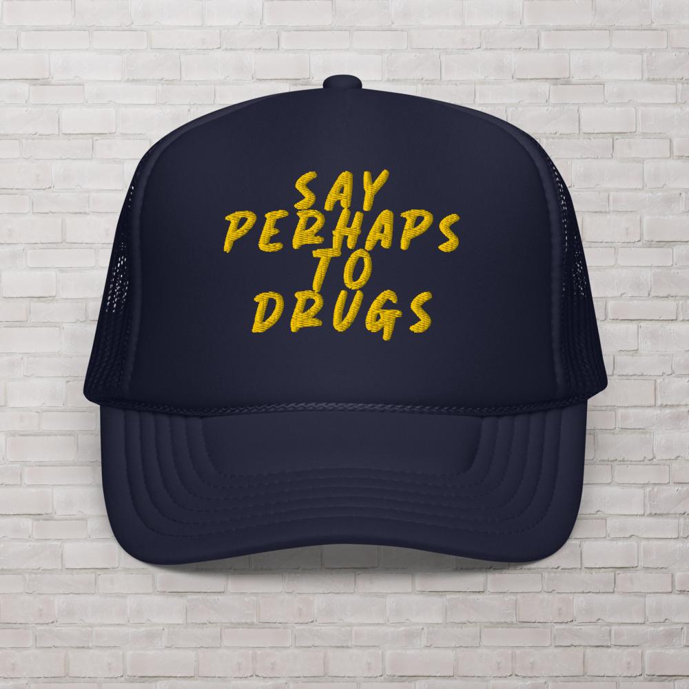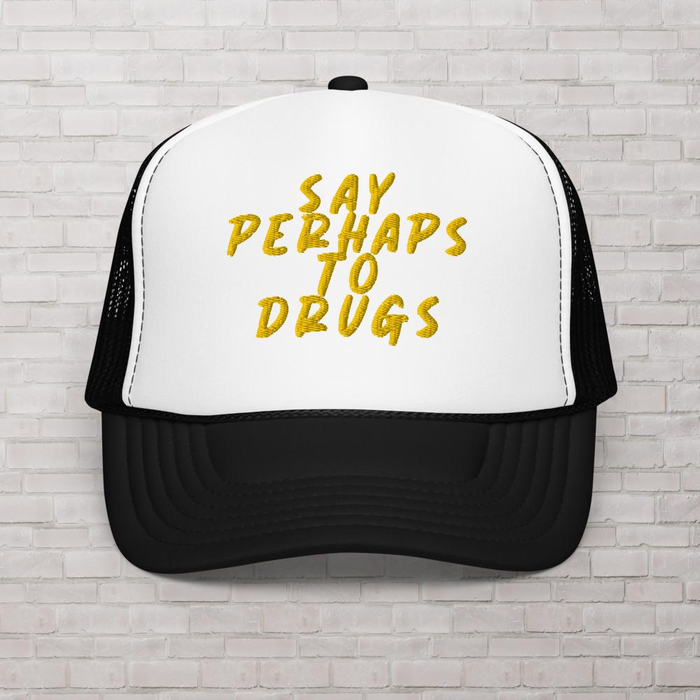 Add a touch of humor and edge to your wardrobe with our "Perhaps To Drugs" foam trucker cap! Whether you're feeling quirky, rebellious, or just plain sassy, this hat is the perfect statement piece for him or her. Get yours now and make a bold statement wherever you go!