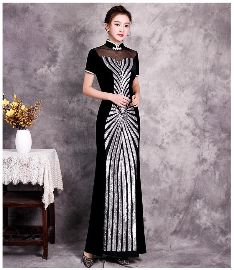 Cheongsam Dresses, Elegant Modern Qipao, Tea Ceremony,Sequin Dresses, Prom dress, gown ball, women dress, Plus Size Dress, over size dress-4