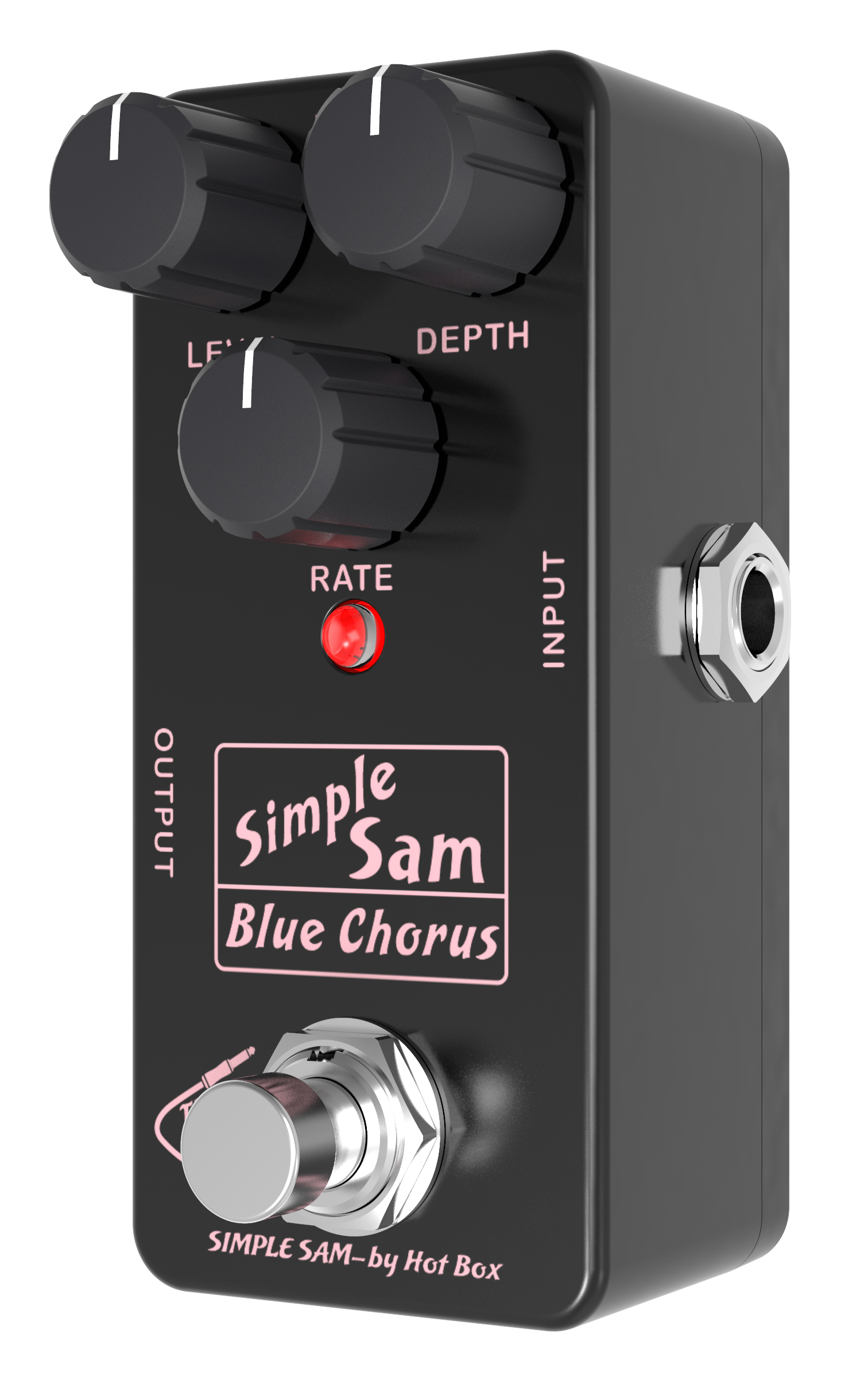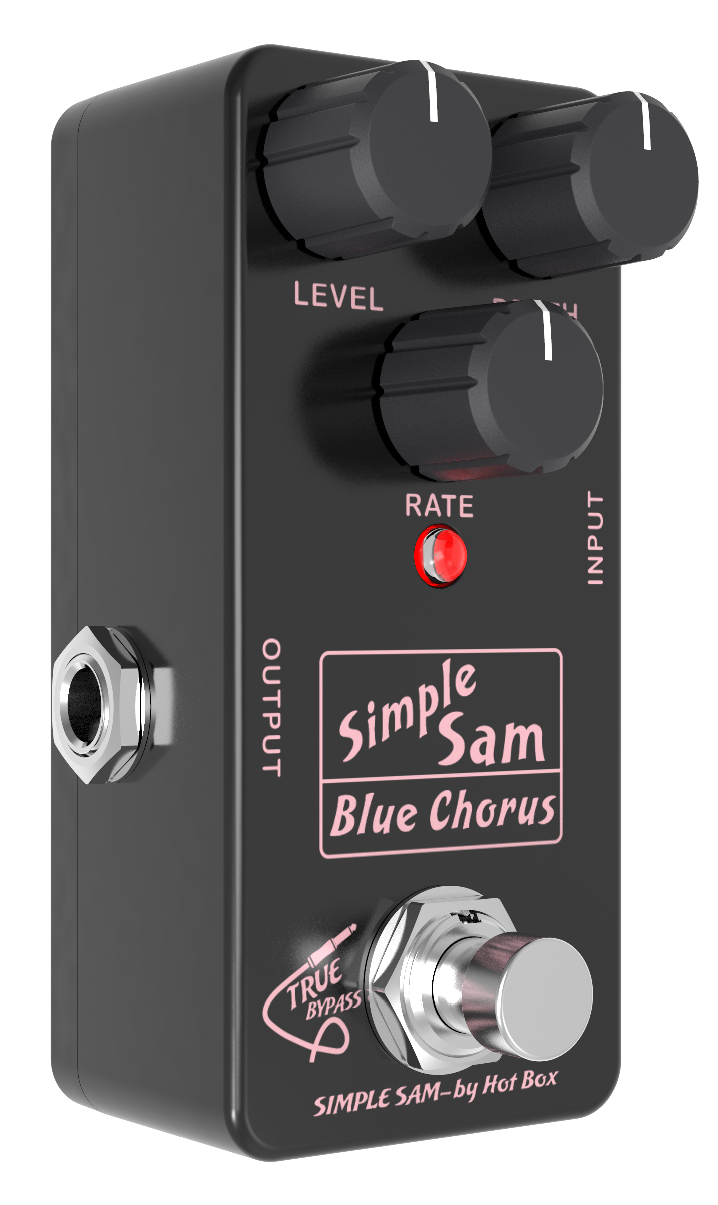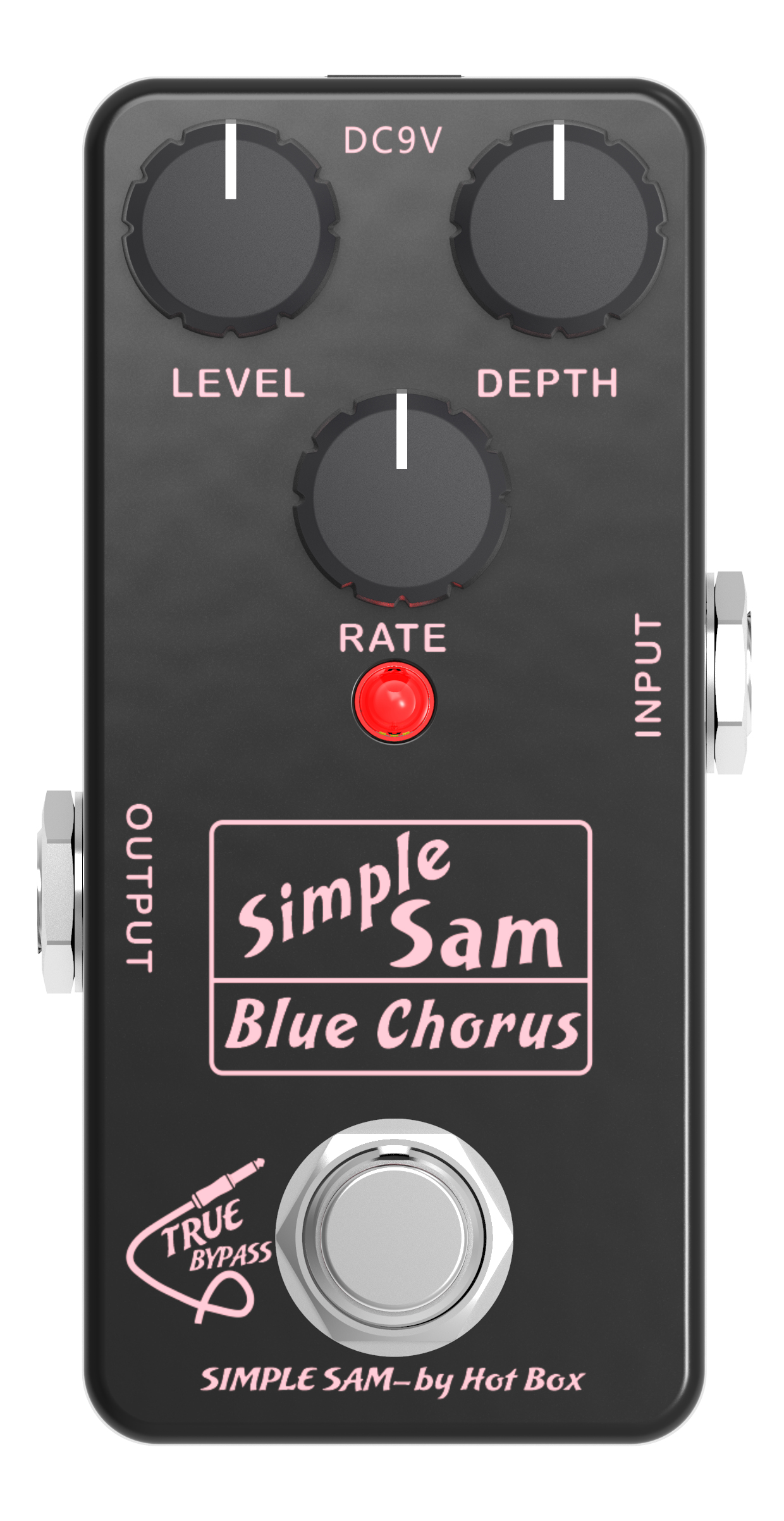 Inspired by the very famous Tone City Angel Wing. Our Simple Sam Blue Chorus is just that, has BBD Chip. Warm and smooth effect does not change the tone of your guitar's original signal. Pedal works with all different types of guitars, pickups and electronics. Higher rate and depth settings offer vintage lofi tones.