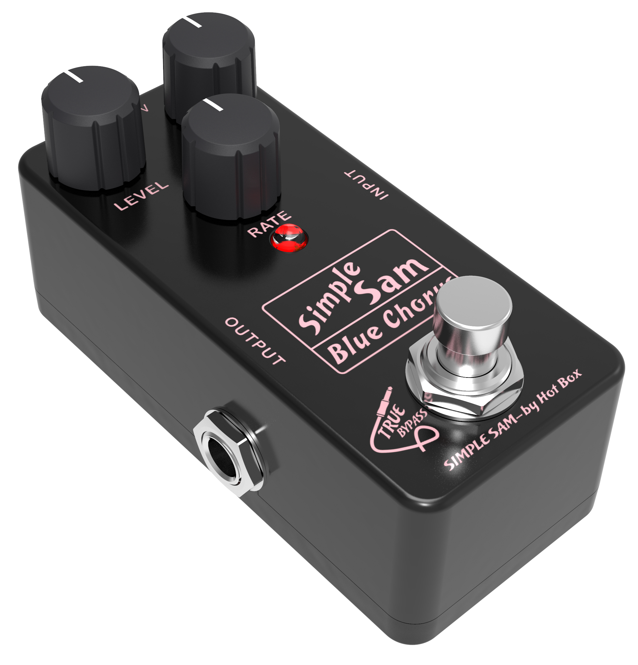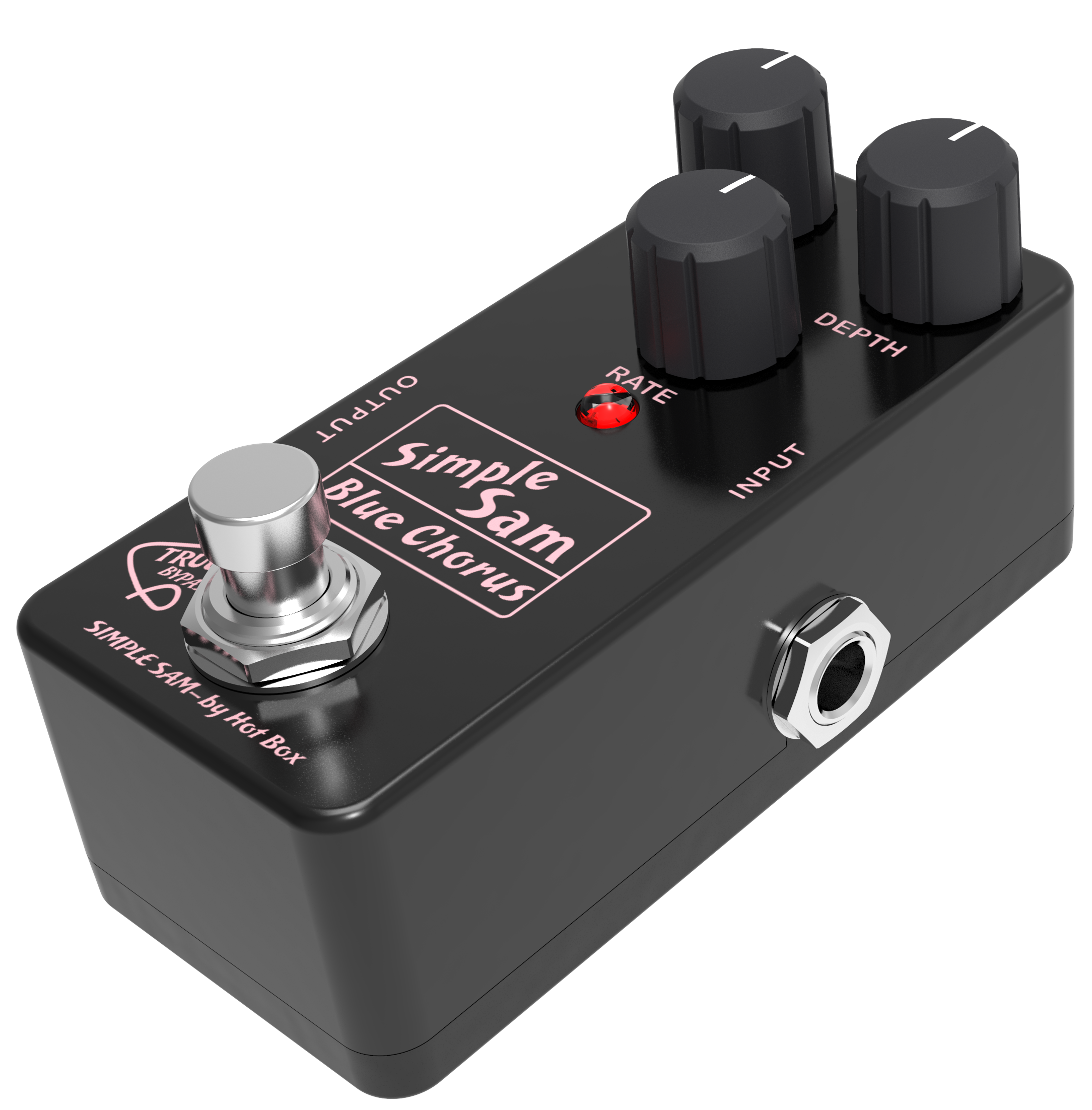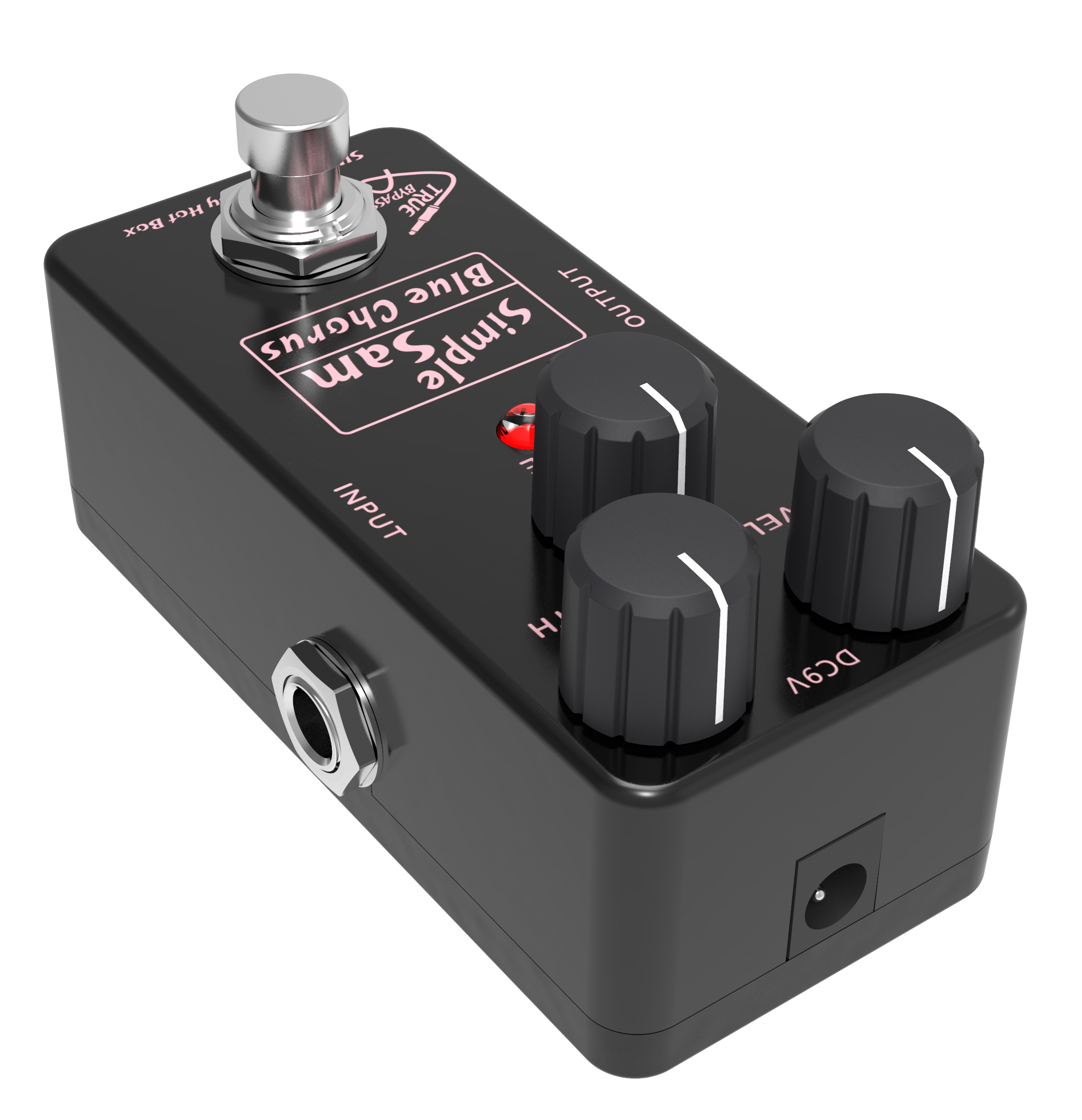 Inspired by the very famous Tone City Angel Wing. Our Simple Sam Blue Chorus is just that, has BBD Chip. Warm and smooth effect does not change the tone of your guitar's original signal. Pedal works with all different types of guitars, pickups and electronics. Higher rate and depth settings offer vintage lofi tones.