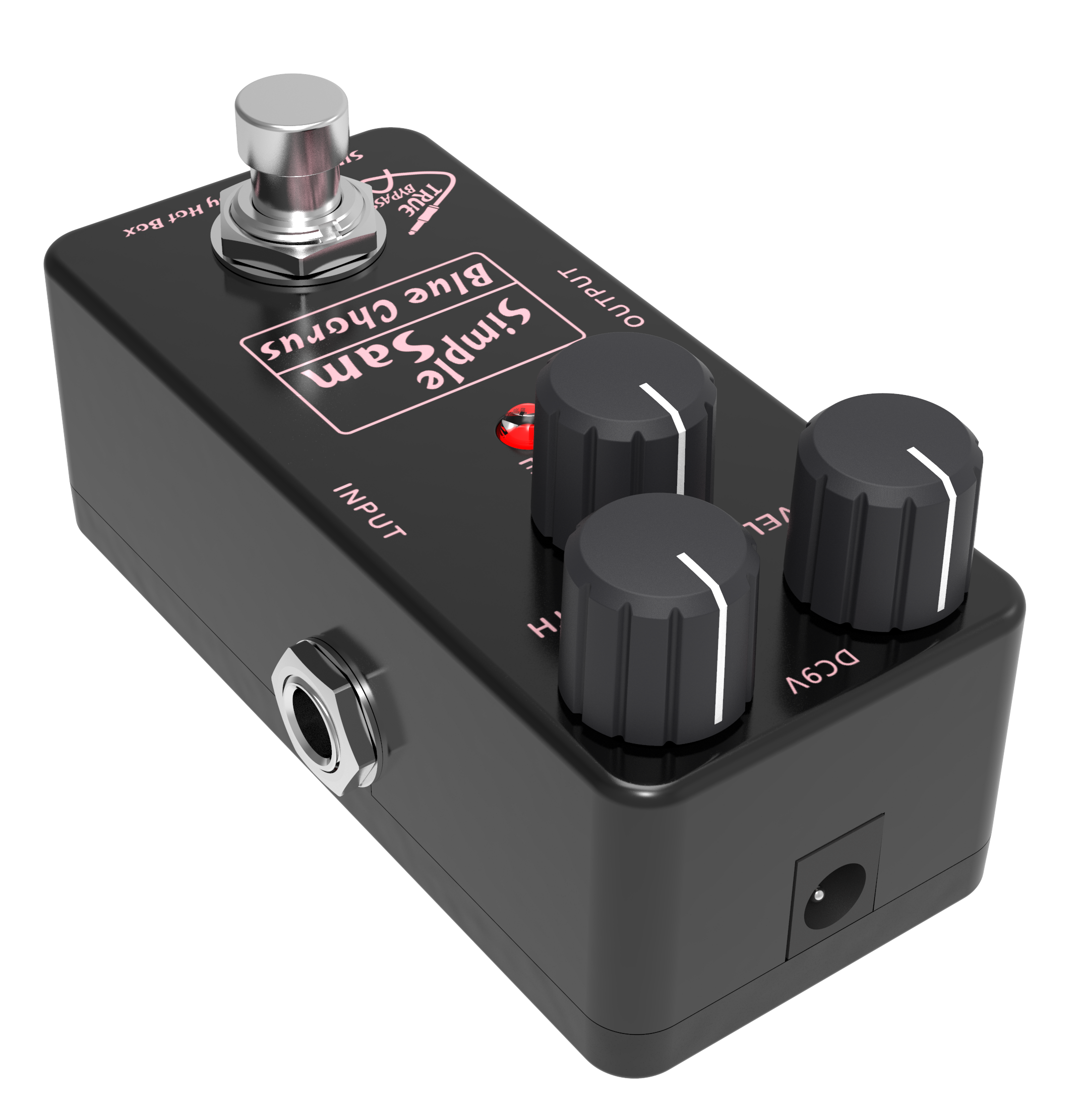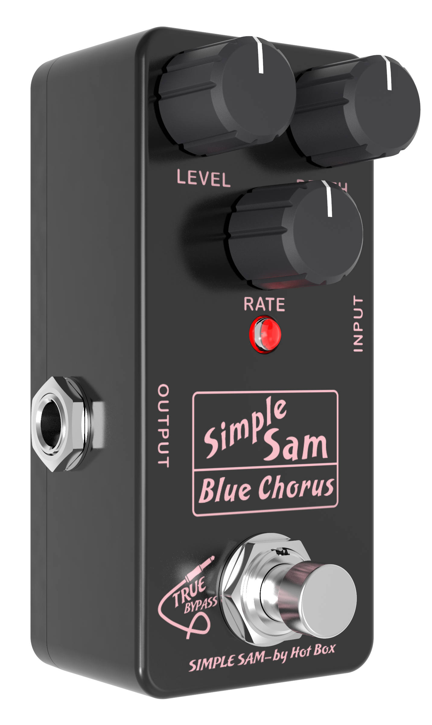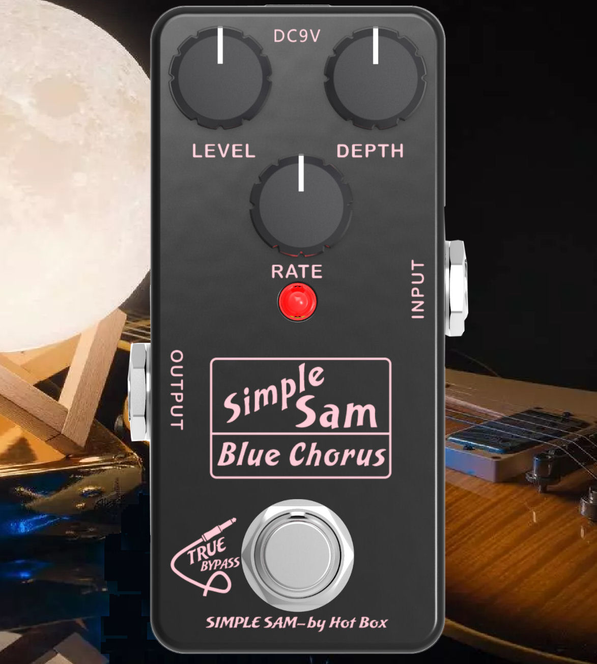 Inspired by the very famous Tone City Angel Wing. Our Simple Sam Blue Chorus is just that, has BBD Chip. Warm and smooth effect does not change the tone of your guitar's original signal. Pedal works with all different types of guitars, pickups and electronics. Higher rate and depth settings offer vintage lofi tones.