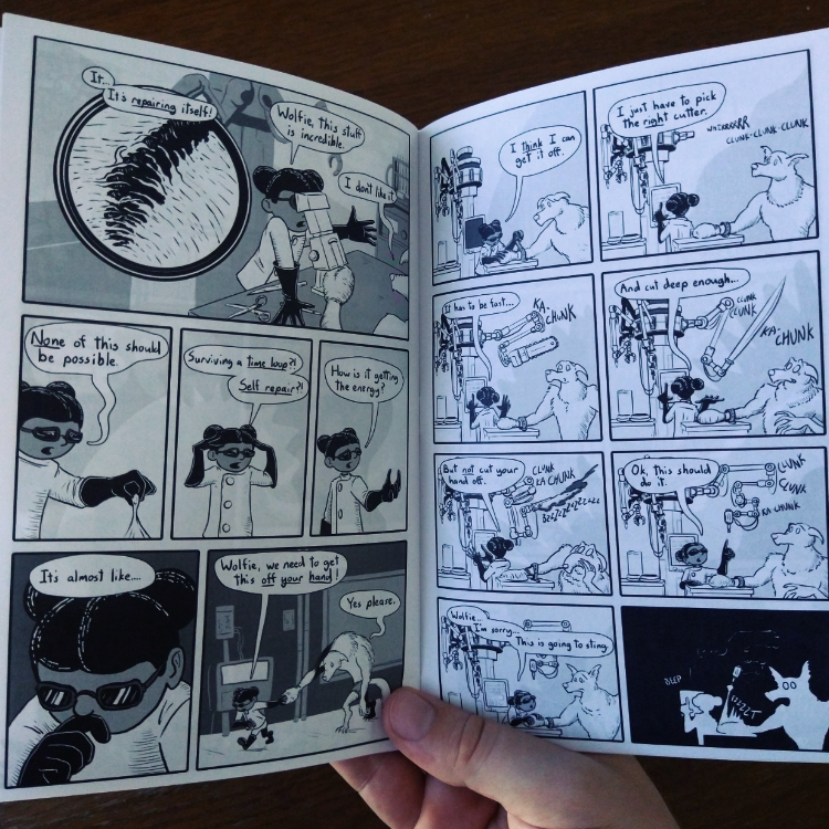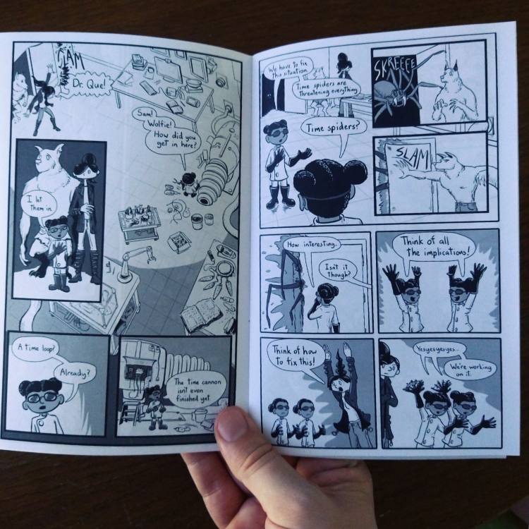 A zine of the Time Spider story from Out By The Lab. It's half page size and 32 pages long with a color cover. You can view the story for free at OutByTheLab.com.