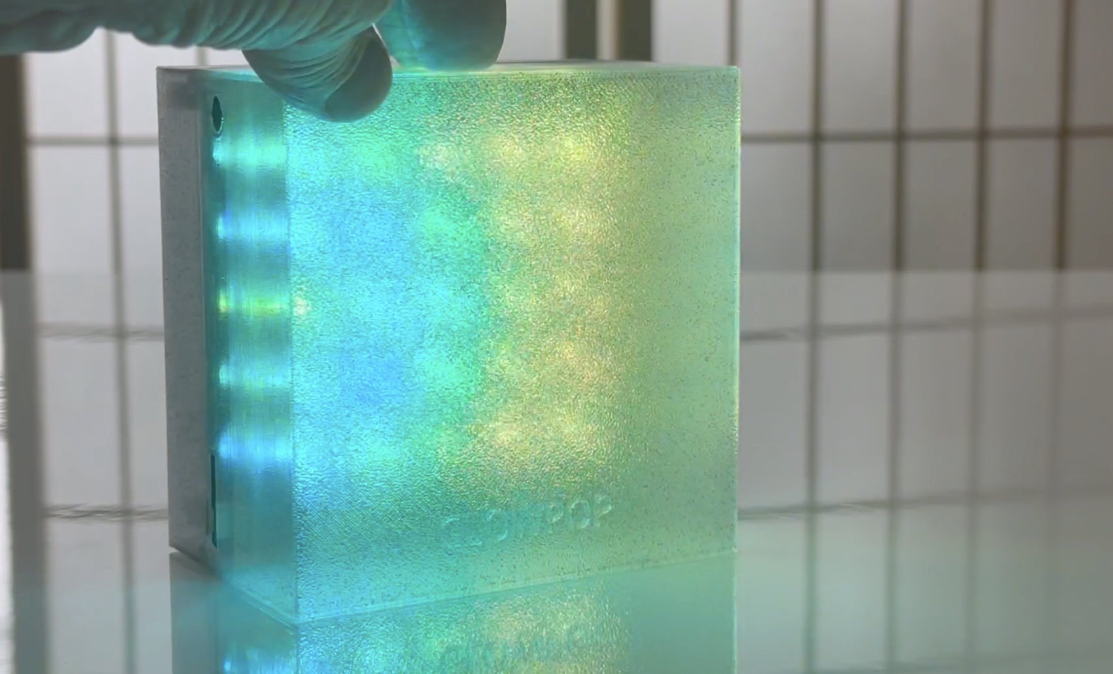 The new version uses a 3D-printed translucent "crystal" shell that diffuses light beautifully, turning the cube into a glowing ambient sculpture — perfect for desktop mood lighting, chillout spaces, or DJ booths.