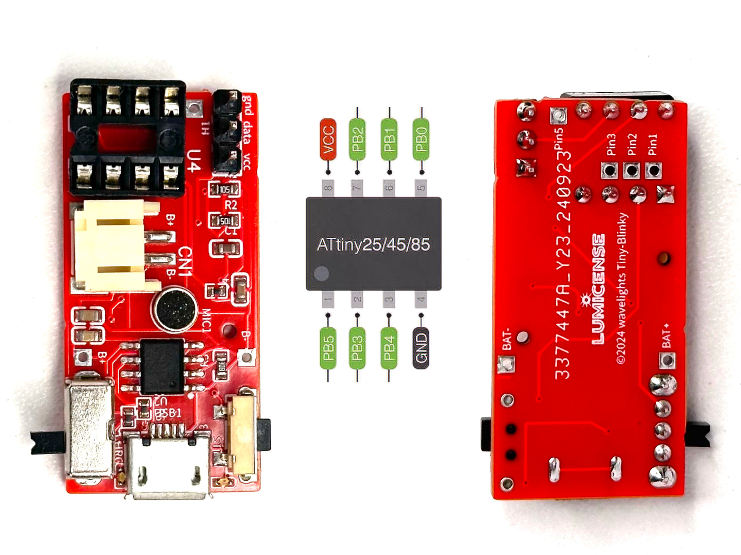 The PCB is wired to use the following I/O pins from the ATtiny85: