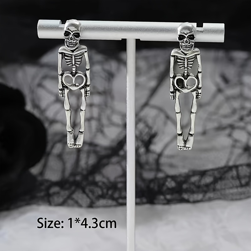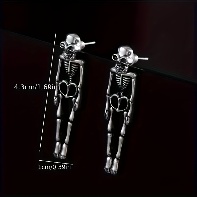 Halloween Ear Ornament Skull Earrings Vintage Skeleton Simulation Human Skeleton Removable Stud Earrings Ghost Couple-4