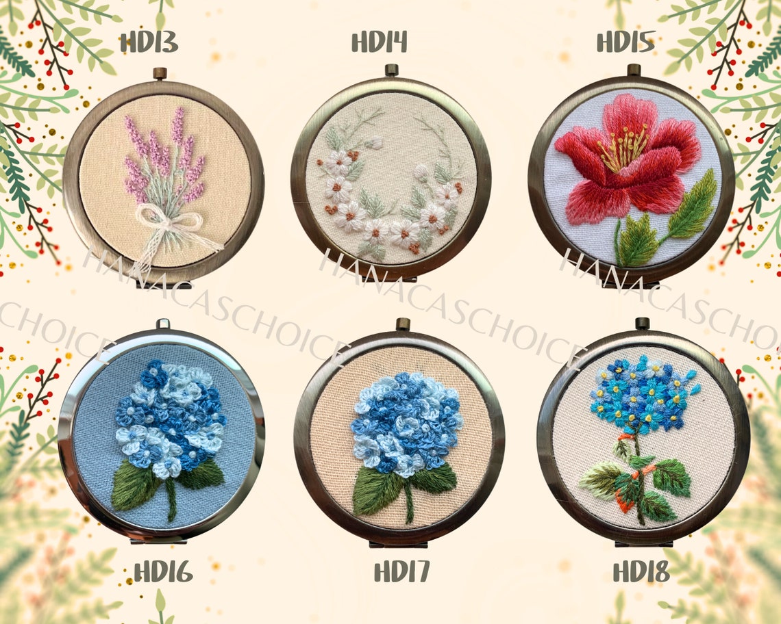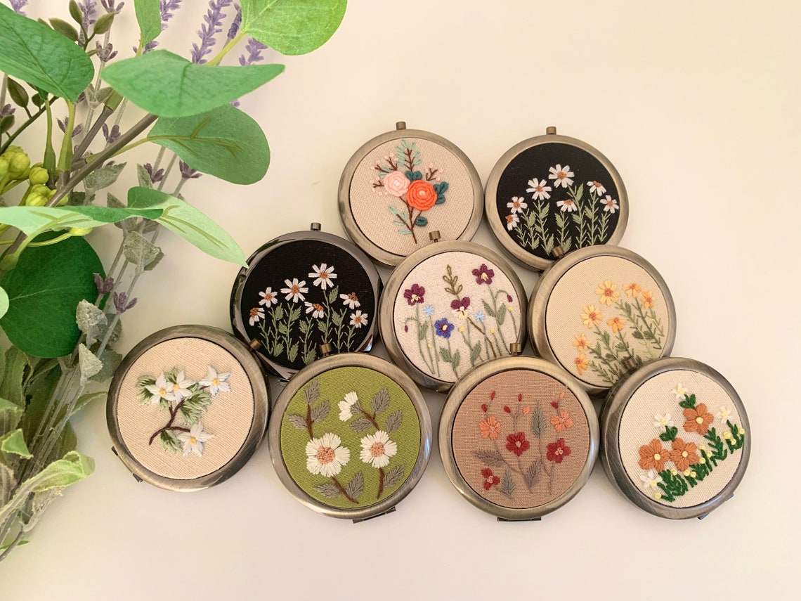 These beautiful pocket mirrors are proudly hand-embroidered and finished by skillful seamstresses. Perfect for adding a touch of charm and elegance to your everyday essentials, these compact mirrors make great gifts for friends, family, and loved ones. Stay beautiful and in style with this must-have accessory!